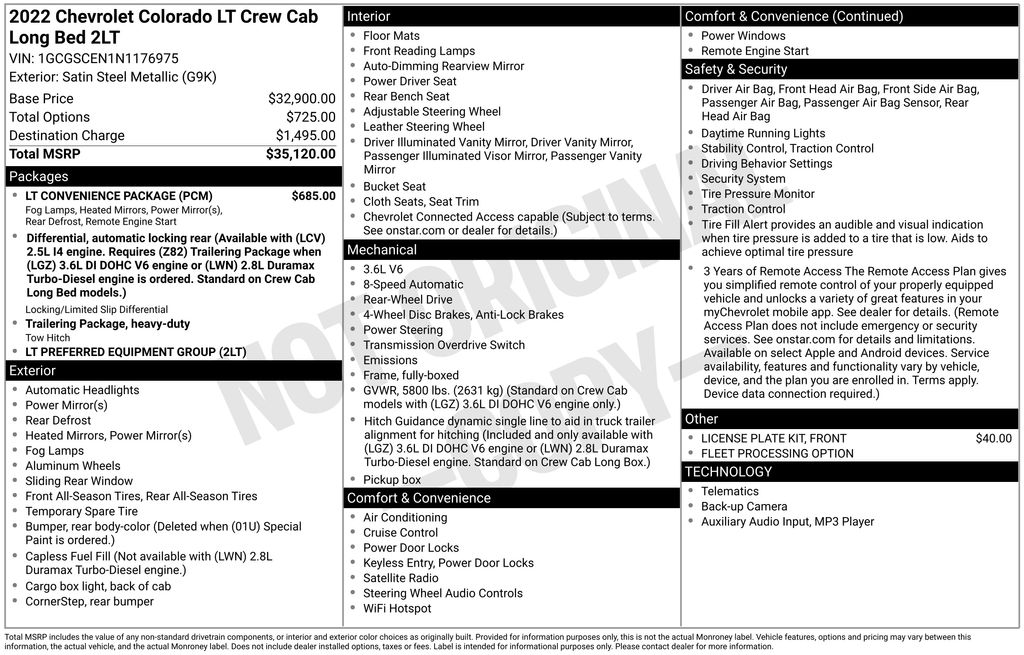 2022 Chevrolet Colorado LT RWD 8-Speed Automatic V6 Satin Steel Metallic