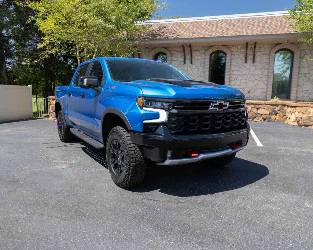 2022 Chevrolet Silverado 1500 ZR2 Glacier Blue Metallic ZR2 4WD 10-Speed Automatic EcoTec3 6.2L V8 10-Speed Automatic, 4WD, Jet Black/Graystone Leather, 10-Way Power Driver Seat w/Lumbar, 10-Way Power Passenger Seat Adjuster w/Lumbar, 12.3" Multicolor Reconfigurable Digital Display, 120-Volt Bed Mounted Power Outlet, 120-Volt Instrument Panel Power Outlet, 15" Diagonal Multicolor Head-Up Display, 170 Amp Alternator, 2 USB Data Ports, 2nd Row Heated Outboard Seats, 3.23 Rear Axle Ratio, 4-Wheel Disc Brakes, 7 Speakers, ABS brakes, Adaptive Cruise Control, Air Conditioning, All-Weather Floor Liner (LPO), Alloy wheels, AM/FM radio: SiriusXM with 360L, Apple CarPlay/Android Auto, Auto High-beam Headlights, Auto-dimming door mirrors, Auto-Dimming Inside Rear-View Mirror, Auto-dimming Rear-View mirror, Auto-Locking Rear Differential, Automatic Emergency Braking, Automatic temperature control, Bed View Camera, Bluetooth® For Phone, Brake assist, Chevrolet Connected Access Capable, Chevytec Spray-On Black Bedliner, Color-Keyed Carpeting Floor Covering, Compass, Deep-Tinted Glass, Delay-off headlights, Driver door bin, Driver Memory, Driver vanity mirror, Dual Exhaust, Dual front impact airbags, Dual front side impact airbags, Dual Rear USB Ports (Charge Only), Electric Rear-Window Defogger, Electrical Steering Column Lock, Electronic Cruise Control, Electronic Stability Control, Electronic Transmission Range Selector Shifter, EZ Lift Power Lock & Release Tailgate, Floor Mounted Center Console, Following Distance Indicator, Forward Collision Alert, Front anti-roll bar, Front Bucket Seats, Front Center Armrest, Front dual zone A/C, Front fog lights, Front LED Fog Lamps, Front License Plate Kit, Front Pedestrian Braking, Front Rainsensing Wipers, Front reading lights, Front wheel independent suspension, Fully automatic headlights, Garage door transmitter, HD Surround Vision, Heated door mirrors, Heated Driver & Front Outboard Passenger Seats, Heated front seats, Heated rear seats, Heated Steering Wheel, Heated steering wheel, Heavy-Duty Air Filter, High Gloss Black Mirror Caps, Hill Descent Control, Hitch Guidance, Hitch Guidance w/Hitch View, Illuminated entry, Integrated Trailer Brake Controller, IntelliBeam Automatic High Beam On/Off, Keyless Open & Start, Lane Keep Assist w/Lane Departure Warning, Leather Wrapped Steering Wheel, LED Cargo Area Lighting, Low tire pressure warning, Manual Tilt/Telescoping Steering Column, Memory seat, Multi-Flex Tailgate, Not Equipped w/Steering Column Lock, Occupant sensing airbag, OnStar & Chevrolet Connected Services Capable, Outside Heated Power-Adjustable Mirrors, Outside temperature display, Overhead airbag, Overhead console, Panic alarm, Passenger door bin, Passenger vanity mirror, Perforated Leather Seat Trim, Performance Red Recovery Hooks, Perimeter Lighting, Power door mirrors, Power driver seat, Power Front Passenger Windows w/Express Up/Down, Power Front Windows w/Driver Express Up/Down, Power passenger seat, Power Rear Windows w/Express Down, Power Sliding Rear Window w/Rear Defogger, Power steering, Power Sunroof, Power Tilt & Telescoping Steering Column, Power windows, Preferred Equipment Group 3LT, Premium audio system: Chevrolet Infotainment 3 Premium, Premium Bose 7-Speaker Sound System, Radio data system, Radio: Chevrolet Infotainment 3 Premium System, Rain sensing wipers, Rear Camera Mirror, Rear Cross Traffic Alert-Braking, Rear Park Assist, Rear Pedestrian Detection, Rear reading lights, Rear seat center armrest, Rear step bumper, Rear Wheelhouse Liners, Rear window defroster, Remote keyless entry, Remote Vehicle Starter System, Safety Alert Seat, Security system, SiriusXM w/360L, Speed control, Speed-sensing steering, Split folding rear seat, Standard Tailgate, Steering Wheel Audio Controls, Steering wheel mounted audio controls, Tachometer, Technology Package, Telescoping steering wheel, Theft Deterrent System (Unauthorized Entry), Tilt steering wheel, Traction control, Traile