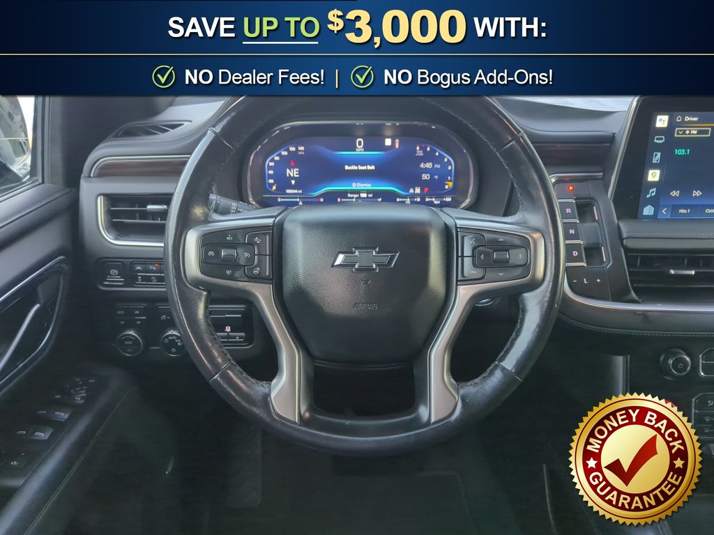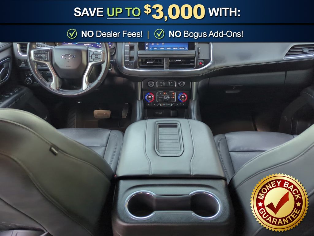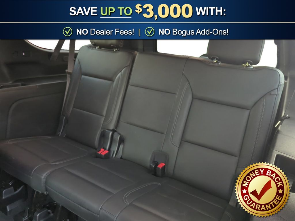 Priced below KBB Fair Purchase Price! 10-Way Power Driver & Passenger Seat Adjusters, 1st & 2nd Row Color-Keyed Carpeted Floor Mats, 2-Speed Active Electronic AutoTrac Transfer Case, 2nd Row Pwr Release 60/40 Split-Folding Bench Seat, 3.23 Rear Axle Ratio, 3rd Row 60/40 Power-Folding Split-Bench, 3rd row seats: split-bench, 4-Wheel Disc Brakes, 9 Speakers, ABS brakes, Advanced Trailering Package, Air Conditioning, Air Ride Adaptive Suspension, All-Weather Cargo Mat (LPO), Alloy wheels, AM/FM radio: SiriusXM with 360L, Apple CarPlay/Android Auto, Auto High-beam Headlights, Auto-Dimming Inside Rear-View Mirror, Auto-dimming Rear-View mirror, Automatic Stop/Start, Automatic temperature control, Black Tubular Assist Steps, Bose 9-Speaker Stereo Audio System Feature, Brake assist, Bright Front & Rear Door Sill Plates, Bumpers: body-color, Color-Keyed Carpeting Floor Covering, Compass, Delay-off headlights, Driver & Front Outboard Passenger Airbags, Driver Alert Package, Driver door bin, Driver vanity mirror, Dual Exhaust System, Dual front impact airbags, Dual front side impact airbags, Electronic Limited Slip Differential, Electronic Stability Control, Emergency communication system: OnStar and Chevrolet connected services capable, Enhanced Driver Information Center, Extra Capacity Cooling System, Floor Console, Floor Console w/Storage Area, Four wheel independent suspension, Front & Rear Park Assist, Front anti-roll bar, Front Bucket Seats, Front Center Armrest, Front dual zone A/C, Front High-Approach Angle Fascia, Front reading lights, Fully automatic headlights, Garage door transmitter, Hands-Free Rear Power Programmable Liftgate, HD Surround Vision, Heated 2nd Row Outboard Seats, Heated door mirrors, Heated Driver & Front Passenger Seats, Heated front seats, Heated Steering Wheel, Hill Descent Control, Hitch Guidance w/Hitch View, Illuminated entry, Infotainment Display, Integrated Trailer Brake Controller, Lane Change Alert w/Side Blind Zone Alert, Leather steering wheel, Leather-Appointed Seating, Leather-Wrapped Steering Wheel, LED Daytime Running Lamps, Low tire pressure warning, Luxury Package, Magnetic Ride Control Suspension, Max Trailering Package, Memory seat, Memory Settings, Memory Settings For Driver, Navigation System, Not Equipped w/Steering Column Lock, Occupant sensing airbag, Off-Road Capability Package, Off-Road Performance Package, Outside Heated Power-Adjustable Mirrors, Outside temperature display, Overhead airbag, Overhead console, Panic alarm, Passenger door bin, Passenger vanity mirror, Power door mirrors, Power driver seat, Power Liftgate, Power passenger seat, Power Release 2nd Row Bucket Seats, Power steering, Power Tilt & Telescopic Steering Column, Power windows, Preferred Equipment Group 2Z7, Premium audio system: Chevrolet Infotainment 3 Premium, Premium Smooth Ride Suspension, Radio: Chevrolet Infotainment 3 Premium System, Rain sensing wipers, Rear air conditioning, Rear anti-roll bar, Rear Cross Traffic Alert, Rear Pedestrian Alert, Rear reading lights, Rear seat center armrest, Rear Seat Media System (DISC), Rear window defroster, Rear window wiper, Red Recovery Hooks, Remote keyless entry, Remote Start, Roof rack: rails only, Security system, SiriusXM Radio w/360L, Smart Trailer Integration Indicator, Speed control, Speed-sensing steering, Split folding rear seat, Spoiler, Start/Stop System Disable Button, Steering wheel mounted audio controls, Tachometer, Telescoping steering wheel, Tilt steering wheel, Traction control, Trip computer, Universal Home Remote, Variably intermittent wipers, Voltmeter, Wheels: 20" x 9" Machined Aluminum, Wireless Charging, Z71 Off-Road Package.