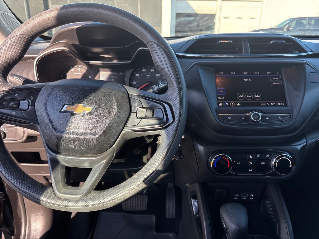 2022 Chevrolet TrailBlazer LS Mosaic Black Metallic LS FWD CVT 1.2L Ecotec Turbo DOHC DI w/VVT 4-Way Manual Front Passenger Seat Adjuster, 4-Wheel Disc Brakes, 5.45 Axle Ratio, 6 Speakers, 6-Speaker Audio System Feature, 6-Way Manual Driver Seat Adjuster, ABS brakes, Air Conditioning, Alloy wheels, AM/FM radio: SiriusXM, Auto High-beam Headlights, Brake assist, Bumpers: body-color, Cloth Seat Trim, Compass, Delay-off headlights, Driver Confidence & Cruise Package, Driver door bin, Driver vanity mirror, Dual front impact airbags, Dual front side impact airbags, Electronic Cruise Control w/Set & Resume Speed, Electronic Stability Control, Emergency communication system: OnStar and Chevrolet connected services capable, Exterior Parking Camera Rear, Flat-Folding Front Passenger Seatback, Front anti-roll bar, Front Bucket Seats, Front Center Armrest, Front License Plate Bracket, Front reading lights, Front wheel independent suspension, Fully automatic headlights, Illuminated entry, Knee airbag, Lane Change Alert w/Side Blind Zone Alert, Low tire pressure warning, Not Equipped w/Rear Park Assist, Occupant sensing airbag, Overhead airbag, Overhead console, Panic alarm, Passenger door bin, Passenger vanity mirror, Power door mirrors, Power steering, Power windows, Preferred Equipment Group 1LS, Radio data system, Radio: Chevrolet Infotainment 3 System, Rear Cross Traffic Alert, Rear Park Assist, Rear side impact airbag, Rear window defroster, Rear window wiper, Remote keyless entry, Ride & Handling Suspension, Security system, SiriusXM Radio, Split folding rear seat, Spoiler, Steering wheel mounted audio controls, Tachometer, Telescoping steering wheel, Tilt steering wheel, Traction control, Trip computer, Variably intermittent wipers, Wheels: 17" Silver-Painted Aluminum, Wireless Apple CarPlay/Android Auto.
