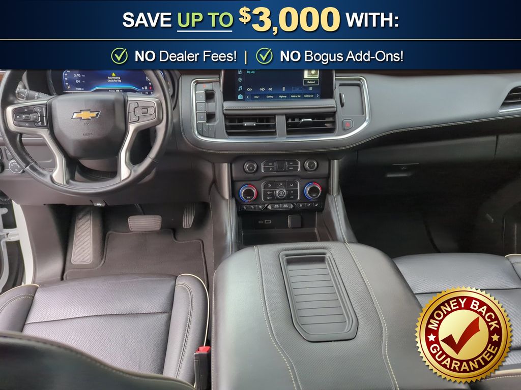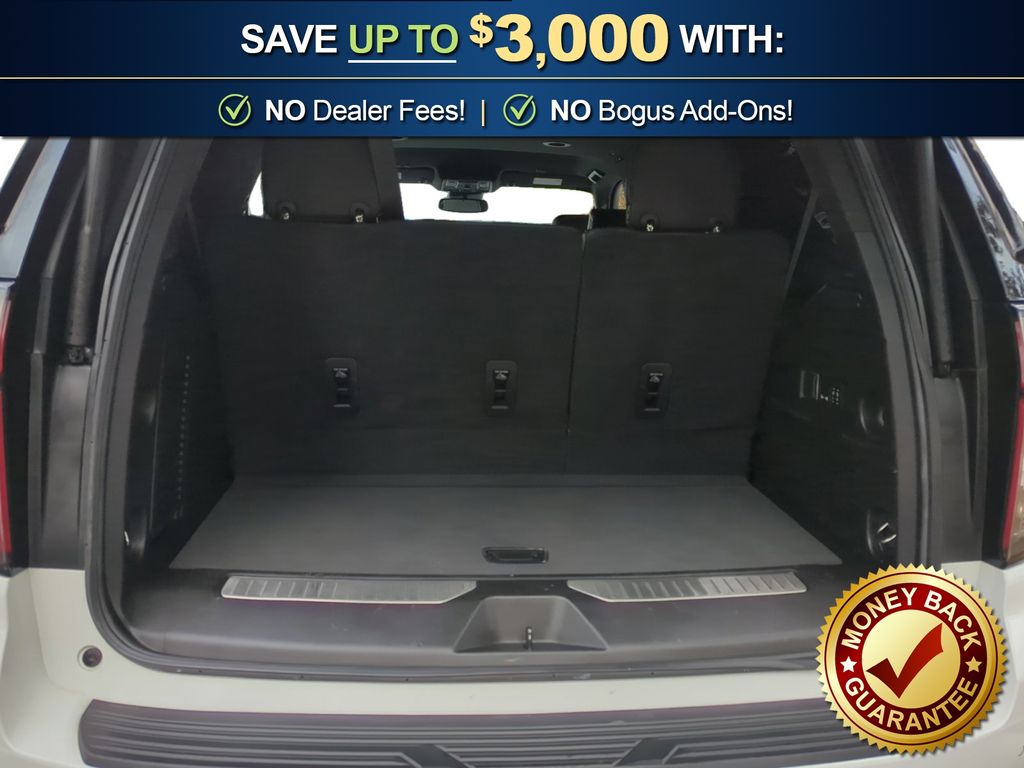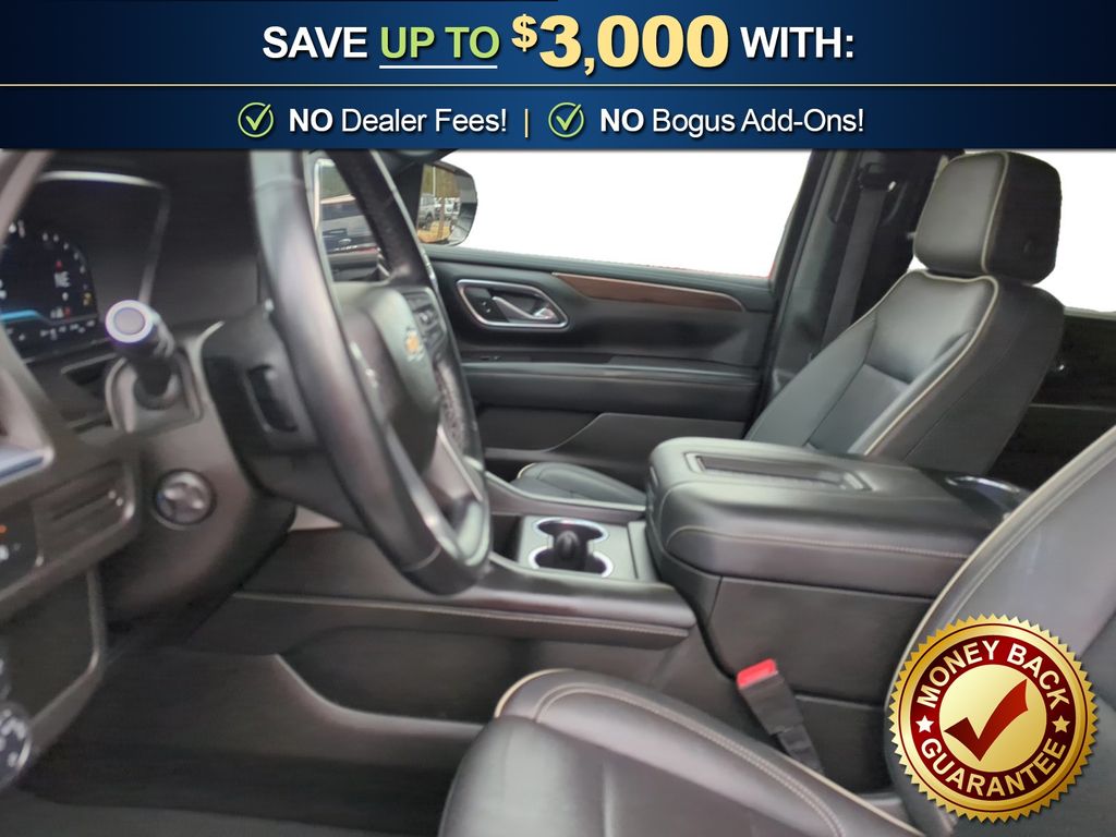 Recent Arrival! 4WD, Black Leather, 10 Speakers, 1st & 2nd Row Color-Keyed Carpeted Floor Mats, 2-Speed Active Electronic AutoTrac Transfer Case, 20" x 9" Polished Aluminum Wheels, 3.23 Rear Axle Ratio, 3rd Row 60/40 Power-Folding Split-Bench Seat, 3rd row seats: split-bench, 4-Wheel Disc Brakes, ABS brakes, Adaptive suspension, Air Conditioning, Alloy wheels, AM/FM radio: SiriusXM with 360L, Apple CarPlay/Android Auto, Auto High-beam Headlights, Auto-dimming door mirrors, Auto-Dimming Inside Rear-View Mirror, Auto-dimming Rear-View mirror, Auto-leveling suspension, Automatic temperature control, Bose 10-Speaker Centerpoint Surround Audio Sys Ft, Brake assist, Bright Front & Rear Door Sill Plates, Bumpers: body-color, Chrome Door Handles w/Body-Color Strip, Chrome Mirror Caps, Color-Keyed Carpeting Floor Covering, Compass, Delay-off headlights, Deleted 3 Years of Remote Access, Driver & Front Outboard Passenger Airbags, Driver door bin, Driver vanity mirror, Dual Exhaust System, Dual front impact airbags, Dual front side impact airbags, Electronic Stability Control, Emergency communication system: OnStar and Chevrolet connected services capable, Enhanced Driver Information Center, Floor Console, Four wheel independent suspension, Front anti-roll bar, Front Bucket Seats, Front Center Armrest, Front dual zone A/C, Front High-Back Reclining Bucket Seats, Front reading lights, Fully automatic headlights, Garage door transmitter, Hands-Free Rear Power Programmable Liftgate, Heated & Ventilated Driver & Front Passenger Seats, Heated 2nd Row Outboard Seats, Heated door mirrors, Heated Driver & Front Passenger Seats, Heated front seats, Heated rear seats, Heated Steering Wheel, Heated steering wheel, Hill Descent Control, Illuminated entry, Infotainment Display, Lane Change Alert w/Side Blind Zone Alert, LED Daytime Running Lamps, Low tire pressure warning, Magnetic Ride Control Suspension, Memory seat, Memory Settings, Navigation System, Not Equipped w/4-Way Driver & Fr Pass Pwr Lumbar, Occupant sensing airbag, Outside Heated Power-Adjustable Mirrors, Outside temperature display, Overhead airbag, Overhead console, Panic alarm, Passenger door bin, Passenger vanity mirror, Perforated Leather Seat Trim, Power door mirrors, Power driver seat, Power Liftgate, Power passenger seat, Power Release 2nd Row Bucket Seats, Power steering, Power Tilt & Telescopic Steering Column, Power windows, Preferred Equipment Group 1LZ, Premium audio system: Chevrolet Infotainment 3 Premium, Radio: Chevrolet Infotainment 3 Premium System, Rain sensing wipers, Rear air conditioning, Rear anti-roll bar, Rear Cross Traffic Alert, Rear reading lights, Rear window defroster, Rear window wiper, Remote keyless entry, Remote Start, Roof rack: rails only, Safety Alert Seat, Security system, SiriusXM Radio w/360L, Speed control, Speed-sensing steering, Split folding rear seat, Spoiler, Steering wheel memory, Steering wheel mounted audio controls, Tachometer, Telescoping steering wheel, Tilt steering wheel, Traction control, Trip computer, Turn signal indicator mirrors, Universal Home Remote, Variably intermittent wipers, Ventilated front seats, Voltmeter, Wireless Charging, Wrapped Steering Wheel, 4WD, Black Leather.
