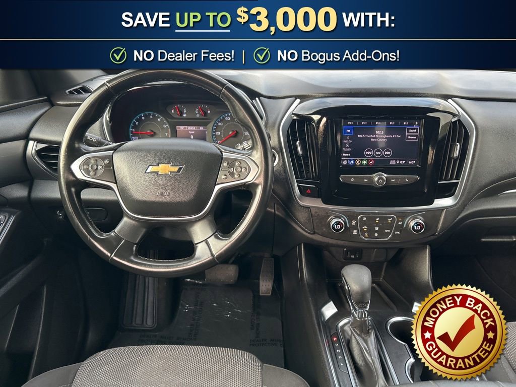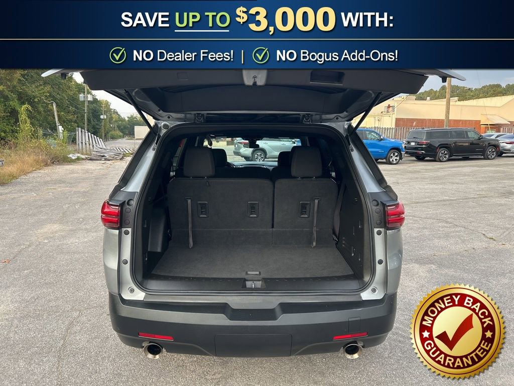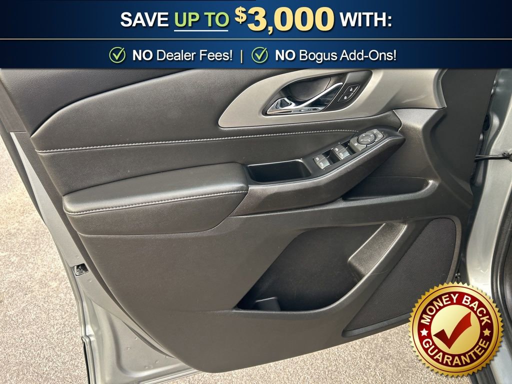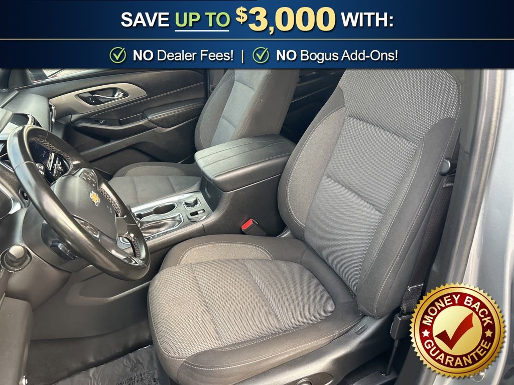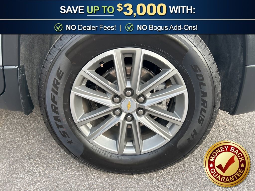 Priced below KBB Fair Purchase Price! 2-Way Manual Front Passenger Seat Adjuster, 3.49 Axle Ratio, 3rd row seats: split-bench, 4-Wheel Disc Brakes, 6 Speakers, 6-Speaker Audio System Feature, 8-Passenger Seating (2-3-3 Seating Configuration), 8-Way Power Driver Seat Adjuster, ABS brakes, Air Conditioning, Alloy wheels, AM/FM radio: SiriusXM, Apple CarPlay/Android Auto, Auto High-beam Headlights, Automatic temperature control, Brake assist, Bumpers: body-color, Compass, Delay-off headlights, Driver door bin, Driver vanity mirror, Dual front impact airbags, Dual front side impact airbags, Electronic Stability Control, Emergency communication system, Exterior Parking Camera Rear, Four wheel independent suspension, Front anti-roll bar, Front Bucket Seats, Front Center Armrest, Front dual zone A/C, Front License Plate Bracket Mounting Package, Front reading lights, Fully automatic headlights, Heated door mirrors, Illuminated entry, Leather steering wheel, Low tire pressure warning, Not Equipped w/Rear Park Assist (060), Occupant sensing airbag, Outside temperature display, Overhead airbag, Overhead console, Panic alarm, Passenger door bin, Passenger vanity mirror, Power door mirrors, Power Driver Lumbar Control, Power driver seat, Power steering, Power windows, Premium Cloth Seat Trim, Radio data system, Radio: Chevrolet Infotainment System AM/FM Stereo, Rear air conditioning, Rear anti-roll bar, Rear reading lights, Rear window defroster, Rear window wiper, Remote keyless entry, Security system, SiriusXM Radio, Speed control, Speed-sensing steering, Spoiler, Steering wheel mounted audio controls, Tachometer, Telescoping steering wheel, Tilt steering wheel, Traction control, Trip computer, Turn signal indicator mirrors, Variably intermittent wipers, Voltmeter, Wheels: 18 Bright Silver-Painted Aluminum.