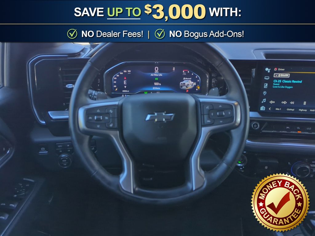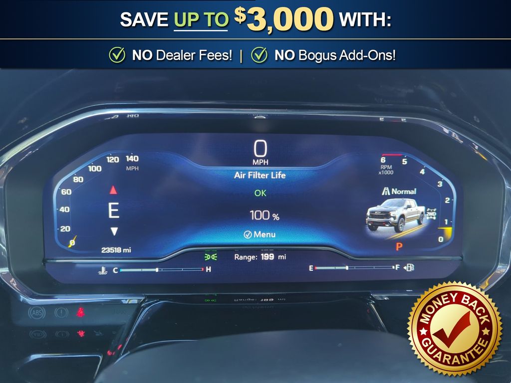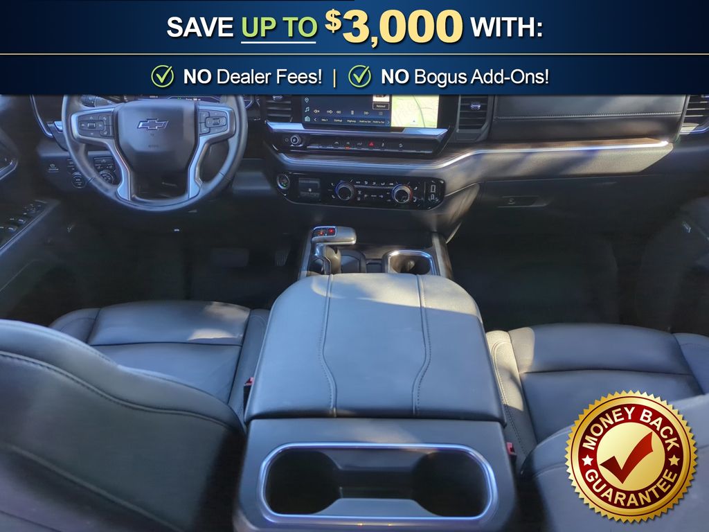 8-Speed Automatic, 4WD, Black Leather, 10-Way Power Driver Seat w/Lumbar, 12.3" Multicolor Reconfigurable Digital Display, 120-Volt Bed Mounted Power Outlet, 120-Volt Interior Power Outlet, 2 USB Data Ports, 220 Amp Alternator, 4-Wheel Disc Brakes, 40/20/40 Front Split-Bench Seat, 6 Speakers, 6-Speaker Audio System, ABS brakes, Air Conditioning, All-Weather Floor Liner (LPO) (AAK), Alloy wheels, AM/FM radio: SiriusXM with 360L, Apple CarPlay/Android Auto, Auto High-beam Headlights, Auto-Locking Rear Differential, Automatic Emergency Braking, Automatic temperature control, Bluetooth® For Phone, Brake assist, Cloth Seat Trim, Color-Keyed Carpeting Floor Covering, Compass, Convenience Package, Convenience Package II, Deep-Tinted Glass, Delay-off headlights, Driver door bin, Driver vanity mirror, Dual Exhaust w/Black Exhaust Tips, Dual Exhaust w/Polished Outlets, Dual front impact airbags, Dual front side impact airbags, Dual Rear USB Ports (Charge Only), Dual-Zone Automatic Climate Control, Electric Rear-Window Defogger, Electronic Cruise Control, Electronic Stability Control, Electronic Transmission Range Selector Shifter, Emergency communication system: OnStar, Engine Block Heater, EZ Lift Power Lock & Release Tailgate, Floor Mounted Center Console, Following Distance Indicator, Forward Collision Alert, Front anti-roll bar, Front Bucket Seats, Front Center Armrest w/Storage, Front dual zone A/C, Front fog lights, Front LED Fog Lamps, Front Pedestrian Braking, Front reading lights, Front wheel independent suspension, Fully automatic headlights, HD Rear Vision Camera, Heated door mirrors, Heated Driver & Front Outboard Passenger Seats, Heated front seats, Heated Power-Adjustable Outside Mirrors, Heated Steering Wheel, Heated steering wheel, Heavy-Duty Air Filter, High Gloss Black Mirror Caps, Hill Descent Control, Hitch Guidance, Hitch Guidance w/Hitch View, Illuminated entry, In-Vehicle Trailering System App, Inside Rear-View Mirror w/Tilt, Integrated Trailer Brake Controller, IntelliBeam Automatic High Beam On/Off, Keyless Open & Start, Lane Keep Assist w/Lane Departure Warning, Leather Package, LED Cargo Area Lighting, Low tire pressure warning, Manual Tilt/Telescoping Steering Column, Occupant sensing airbag, OnStar Services Capable, Outside temperature display, Overhead airbag, Overhead console, Panic alarm, Passenger door bin, Passenger vanity mirror, Performance Red Recovery Hooks, Power door mirrors, Power driver seat, Power Front Windows w/Driver Express Up/Down, Power Front Windows w/Passenger Express Down, Power Rear Windows w/Express Down, Power Sliding Rear Window w/Rear Defogger, Power steering, Power windows, Preferred Equipment Group 2LT, Premium audio system: Chevrolet Infotainment 3 Premium, Premium Bose 7-Speaker Sound System, Radio data system, Radio: Chevrolet Infotainment 3 Premium System, Rear 60/40 Folding Bench Seat (Folds Up), Rear reading lights, Rear step bumper, Rear window defroster, Remote keyless entry, Remote Vehicle Starter System, Security system, Single Outlet Exhaust, SiriusXM w/360L Trial Subscription, Speed control, Speed-sensing steering, Split folding rear seat, Standard Tailgate, Steering Wheel Audio Controls, Steering wheel mounted audio controls, Suspension Package, Tachometer, Teen Driver, Telescoping steering wheel, Theft Deterrent System (Unauthorized Entry), Tilt steering wheel, Tire Pressure Monitoring System, Traction control, Trailering Package, Trip computer, Universal Home Remote, Up-Level Rear Seat w/Storage Package, Variably intermittent wipers, Voltmeter, Wheels: 20" x 9" High Gloss Black Painted Alum, Wi-Fi Hot Spot Capable, Wireless Charging, Wrapped Steering Wheel, 8-Speed Automatic, 4WD, Black Leather.