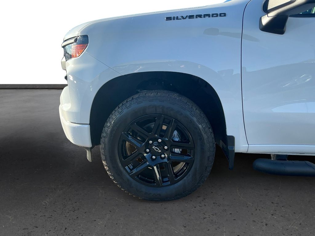 2025 Chevrolet Silverado 1500 Custom Summit White Custom 4WD 8-Speed Automatic 2.7L I4 Turbocharged DOHC 16V LEV3-SULEV30 310hp 8-Speed Automatic, 4WD, Black Cloth, 10-Way Power Driver Seat w/Lumbar, 120-Volt Bed Mounted Power Outlet, 120-Volt Interior Power Outlet, 3.42 Rear Axle Ratio, 3.5" Monochromatic Display Driver Info Center, 4-Wheel Disc Brakes, 4" Black Round Assist Steps (LPO), 40/20/40 Front Split-Bench Seat, 6 Speakers, 6-Speaker Audio System, ABS brakes, Air Conditioning, Alloy wheels, AM/FM radio: SiriusXM, Apple CarPlay/Android Auto, Auto High-beam Headlights, Auto-Locking Rear Differential, Automatic Emergency Braking, Black Chrome Exhaust Tip (LPO), Black Name Plates (LPO), Black Tailgate CHEVROLET Lettering (LPO), Bluetooth® For Phone, Brake assist, Bumpers: body-color, Chevytec Spray-On Black Bedliner, Cloth Seat Trim, Color-Keyed Carpeting Floor Covering, Compass, Custom Convenience Package, Custom Value Package, Dark Essentials Package (LPO), Deep-Tinted Glass, Delay-off headlights, Driver door bin, Driver vanity mirror, Dual front impact airbags, Dual front side impact airbags, Dual Rear USB Ports (Charge Only), Electric Rear-Window Defogger, Electronic Cruise Control, Electronic Stability Control, Emergency communication system: OnStar, EZ Lift Power Lock & Release Tailgate, Following Distance Indicator, Forward Collision Alert, Front anti-roll bar, Front Black Bowtie Emblem (LPO), Front Center Armrest w/Storage, Front Frame-Mounted Black Recovery Hooks, Front License Plate Kit, Front Pedestrian Braking, Front reading lights, Front Rubberized Vinyl Floor Mats, Front wheel independent suspension, Fully automatic headlights, HD Rear Vision Camera, Heated door mirrors, High Capacity Suspension Package, Hitch Guidance, Illuminated entry, Integrated Trailer Brake Controller, IntelliBeam Automatic High Beam On/Off, Lane Keep Assist w/Lane Departure Warning, LED Cargo Area Lighting, Low tire pressure warning, Manual Tilt Wheel Steering Column, Occupant sensing airbag, OnStar Services Capable, Outside temperature display, Overhead airbag, Overhead console, Panic alarm, Passenger door bin, Passenger vanity mirror, Power door mirrors, Power driver seat, Power Front Windows w/Driver Express Up/Down, Power Front Windows w/Passenger Express Down, Power Rear Windows w/Express Down, Power steering, Power windows, Preferred Equipment Group 1CX, Premium audio system: Chevrolet Infotainment 3, Radio data system, Radio: Chevrolet Infotainment 3 System, Rear 60/40 Folding Bench Seat (Folds Up), Rear reading lights, Rear Rubberized-Vinyl Floor Mats, Rear step bumper, Rear window defroster, Remote Keyless Entry, Remote keyless entry, Remote Vehicle Starter System, Security system, SiriusXM Trial Subscription, Speed control, Speed-sensing steering, Split folding rear seat, Standard Tailgate, Tachometer, Teen Driver, Theft Deterrent System (Unauthorized Entry), Tilt steering wheel, Tire Pressure Monitoring System, Traction control, Trailering Package, Trip computer, TurboMax Blackout Package, Variably intermittent wipers, Voltmeter, Wheels: 20" x 9" Bright Silver Painted Aluminum, Wheels: 20" x 9" High Gloss Black Painted Alum, Wi-Fi Hot Spot Capable, 8-Speed Automatic, 4WD, Black Cloth.