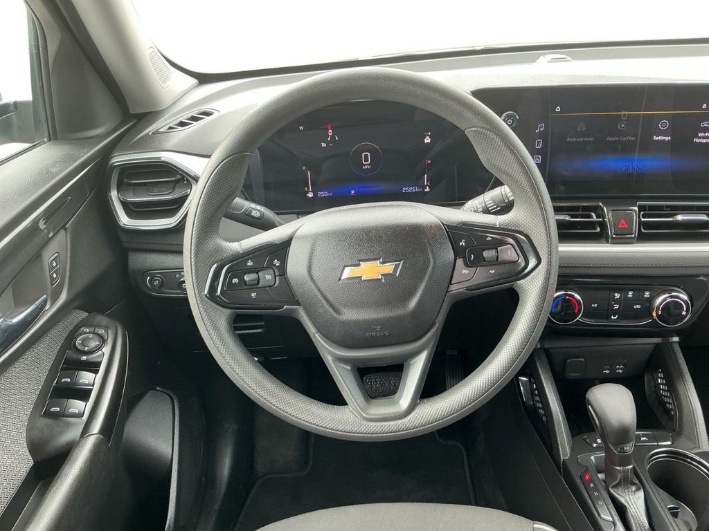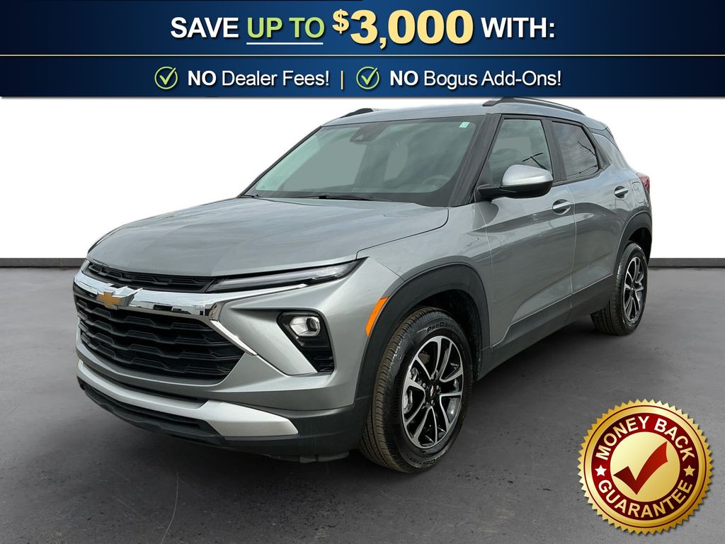 2025 Chevrolet TrailBlazer LT Sterling Gray Metallic LT FWD CVT 1.2L I3 DI Flex Fuel Turbocharged DOHC 12V LEV3-SULEV30 137hp 1 Type-A and 1 Type-C USB Ports, 4-Way Manual Front Passenger Seat Adjuster, 4-Wheel Disc Brakes, 5.45 Final Drive Axle Ratio, 6 Speakers, 6-Speaker Audio System Feature, 6-Way Manual Driver Seat Adjuster, ABS brakes, Air Conditioning, Alloy wheels, AM/FM radio: SiriusXM, Auto High-beam Headlights, Brake assist, Bumpers: body-color, Cloth Seat Trim, Compass, Delay-off headlights, Driver door bin, Driver vanity mirror, Dual front impact airbags, Dual front side impact airbags, Electronic Stability Control, Emergency communication system: OnStar and Chevrolet connected services capable, Exterior Parking Camera Rear, Flat-Folding Front Passenger Seatback, Front anti-roll bar, Front Bucket Seats, Front Center Armrest, Front reading lights, Front wheel independent suspension, Fully automatic headlights, Heated door mirrors, Illuminated entry, Knee airbag, Low tire pressure warning, Occupant sensing airbag, Overhead airbag, Overhead console, Panic alarm, Passenger door bin, Passenger vanity mirror, Power door mirrors, Power steering, Power windows, Preferred Equipment Group 1LT, Radio data system, Radio: AM/FM Stereo Audio System, Rear side impact airbag, Rear window defroster, Rear window wiper, Remote keyless entry, Ride and Handling Suspension, Security system, SiriusXM Trial Subscription, Speed control, Split folding rear seat, Spoiler, Steering wheel mounted audio controls, Tachometer, Telescoping steering wheel, Tilt steering wheel, Traction control, Trip computer, Variably intermittent wipers, Wheels: 17" High Gloss Black Machined Aluminum, Wireless Apple CarPlay/Android Auto.