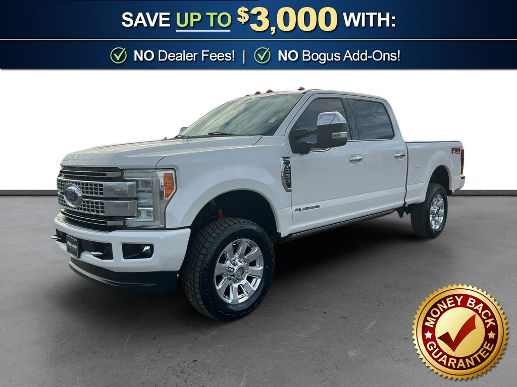 2017 Ford F-250SD Platinum White Platinum Platinum 4WD TorqShift 6-Speed Automatic Power Stroke 6.7L V8 DI 32V OHV Turbodiesel 4WD, 10 Speakers, 110V/400W Outlet, 20" Polished Aluminum Wheels, 3.73 Axle Ratio, 4-Wheel Disc Brakes, ABS brakes, Adaptive Cruise Control & Collision Warning, Adjustable pedals, Air Conditioning, Alloy wheels, AM/FM radio: SiriusXM, Auto High-beam Headlights, Auto tilt-away steering wheel, Auto-dimming Rear-View mirror, Automatic temperature control, Brake assist, Bumpers: body-color, CD player, Compass, Delay-off headlights, Driver door bin, Driver vanity mirror, Dual front impact airbags, Dual front side impact airbags, Electronic Stability Control, Emergency communication system: SYNC 3 911 Assist, Exterior Parking Camera Rear, Flow-Through Console, Front anti-roll bar, Front Bucket Seats, Front Center Armrest, Front dual zone A/C, Front fog lights, Front reading lights, Fully automatic headlights, Garage door transmitter, GVWR: 10,000 lb Payload Package, Heated door mirrors, Heated front seats, Heated rear seats, Heated steering wheel, Illuminated entry, Leather steering wheel, LED Roof Clearance Lights, Low tire pressure warning, Memory seat, Navigation System, Order Code 703A, Outside temperature display, Overhead airbag, Overhead console, Panic alarm, Passenger door bin, Passenger vanity mirror, Pedal memory, Platinum Ultimate Package, Power door mirrors, Power driver seat, Power passenger seat, Power steering, Power windows, Radio data system, Radio: Premium Sony Audio w/Single-CD/MP3 Player, Rain sensing wipers, Rear CHMSL Camera, Rear Parking Sensors, Rear reading lights, Rear seat center armrest, Rear step bumper, Rear window defroster, Remote keyless entry, Security system, SiriusXM Radio, Speed control, Speed-sensing steering, Split folding rear seat, Steering wheel memory, Steering wheel mounted A/C controls, Steering wheel mounted audio controls, SYNC 3 Communications & Entertainment System, Tachometer, Telescoping steering wheel, Tilt steering wheel, Traction control, Trip computer, Turn signal indicator mirrors, Twin Panel Power Moonroof, Ultimate Trailer Tow Camera System, Unique Platinum Leather 40/Console/40 Seats, Upfitter Switches (6), Variably intermittent wipers, Ventilated front seats, 4WD.