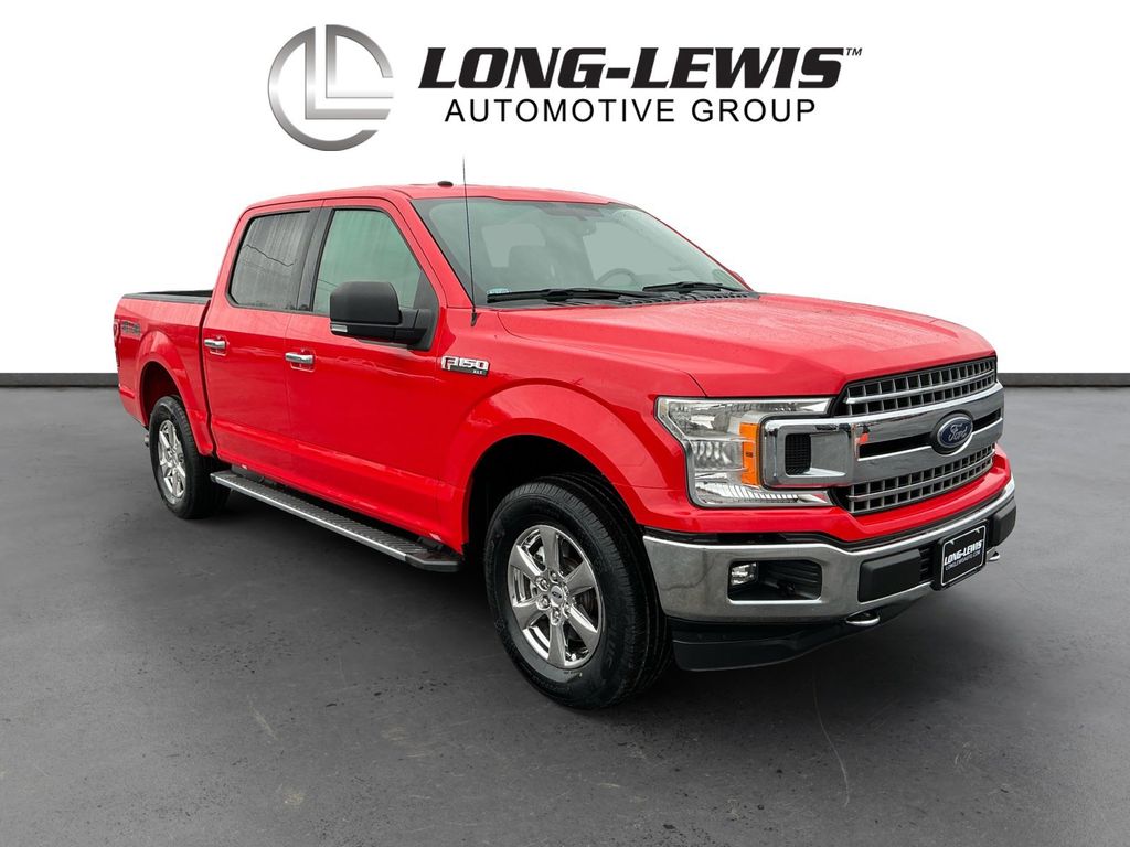 2018 Ford F-150 XLT Race Red XLT 4WD 10-Speed Automatic 5.0L V8 4WD, 2-Bar Style Grille w/Chrome 2 Minor Bars, 3.31 Axle Ratio, 4-Wheel Disc Brakes, 6 Speakers, ABS brakes, Air Conditioning, Alloy wheels, AM/FM radio, Auto-Dimming Rear-View Mirror, Brake assist, Bumpers: chrome, CD player, Chrome Door & Tailgate Handles w/Body-Color Bezel, Chrome Step Bars, Class IV Trailer Hitch Receiver, Compass, Delay-off headlights, Driver door bin, Driver vanity mirror, Dual front impact airbags, Dual front side impact airbags, Electronic Stability Control, Emergency communication system: 911 Assist, Equipment Group 301A Mid, Exterior Parking Camera Rear, Front anti-roll bar, Front Center Armrest w/Storage, Front fog lights, Front reading lights, Front wheel independent suspension, Fully automatic headlights, Illuminated entry, Integrated Trailer Brake Controller, Low tire pressure warning, Occupant sensing airbag, Outside temperature display, Overhead airbag, Panic alarm, Passenger door bin, Passenger vanity mirror, Power door mirrors, Power Glass Heated Sideview Mirrors, Power steering, Power windows, Radio data system, Radio: AM/FM Stereo/Single-CD Player, Radio: Single-CD/SiriusXM w/7 Speakers, Rear reading lights, Rear step bumper, Remote keyless entry, Security system, Single-Tip Chrome Exhaust, Speed control, Speed-sensing steering, Split folding rear seat, Spray-In Bedliner (Pre-Installed), Steering wheel mounted audio controls, SYNC, Tachometer, Telescoping steering wheel, Tilt steering wheel, Traction control, Variably intermittent wipers, Voltmeter, Wheels: 17" Silver Painted Aluminum, Wheels: 18" Chrome-Like PVD, XLT Chrome Appearance Package, 4WD.