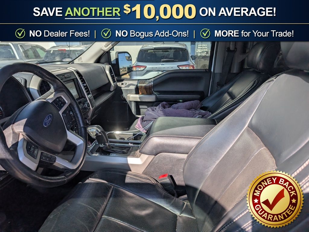 2019 Ford F-150 Lariat Oxford White Lariat 4WD 10-Speed Automatic 5.0L V8 4WD, 110V/400W Outlet, 18" Machined-Aluminum Wheels, 3.31 Axle Ratio, 4-Wheel Disc Brakes, 7 Speakers, ABS brakes, Adjustable pedals, Air Conditioning, Alloy wheels, AM/FM radio: SiriusXM, AppLink/Apple CarPlay and Android Auto, Auto High-beam Headlights, Auto-dimming door mirrors, Auto-dimming Rear-View mirror, Automatic temperature control, Brake assist, Bumpers: chrome, Class IV Trailer Hitch Receiver, Compass, Delay-off headlights, Driver door bin, Driver vanity mirror, Dual front impact airbags, Dual front side impact airbags, Electronic Stability Control, Emergency communication system: SYNC 3 911 Assist, Equipment Group 500A Base, Exterior Parking Camera Rear, Front anti-roll bar, Front Center Armrest w/Storage, Front dual zone A/C, Front fog lights, Front License Plate Bracket, Front reading lights, Front wheel independent suspension, Fully automatic headlights, GVWR: 7,050 lbs Payload Package, Heated door mirrors, Heated front seats, Illuminated entry, Leather-Trimmed 40/20/40 Front Seat, Low tire pressure warning, Memory seat, Occupant sensing airbag, Outside temperature display, Overhead airbag, Overhead console, Panic alarm, Passenger door bin, Passenger vanity mirror, Pedal memory, Power door mirrors, Power driver seat, Power passenger seat, Power steering, Power windows, Radio data system, Radio: AM/FM Stereo w/6 Speakers, Rear reading lights, Rear seat center armrest, Rear step bumper, Rear window defroster, Remote keyless entry, Security system, SiriusXM Radio, Speed control, Speed-sensing steering, Split folding rear seat, Steering wheel mounted audio controls, SYNC 3, Tachometer, Telescoping steering wheel, Tilt steering wheel, Traction control, Trip computer, Turn signal indicator mirrors, Variably intermittent wipers, Ventilated front seats, Voice-Activated Touchscreen Navigation, Voltmeter, 4WD.