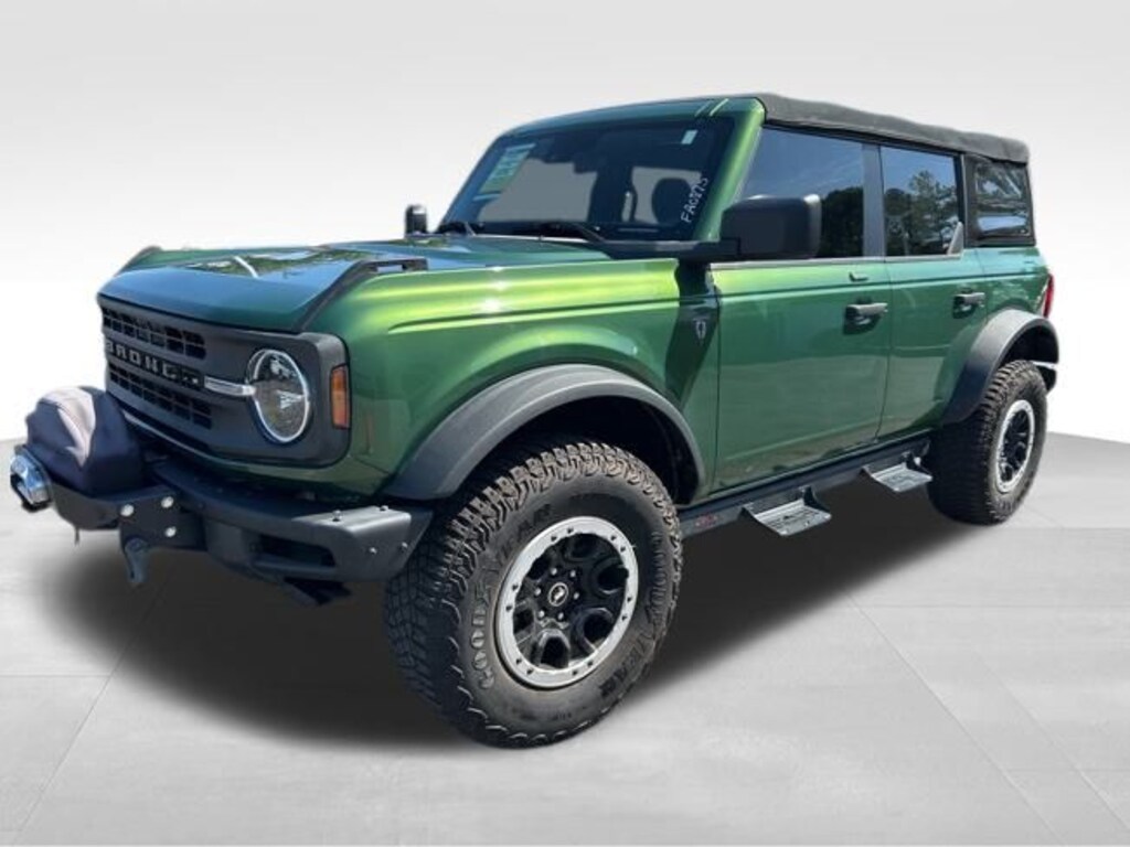 2022 Ford Bronco Base Green Metallic 4WD 10-Speed Automatic 2.7L EcoBoost V6 4-Wheel Disc Brakes, 6 Speakers, ABS brakes, Air Conditioning, AM/FM radio: SiriusXM with 360L, AM/FM Stereo, Auto High-beam Headlights, Brake assist, Compass, Delay-off headlights, Driver door bin, Driver vanity mirror, Dual front impact airbags, Dual front side impact airbags, Electronic Stability Control, Emergency communication system: 911 Assist, Exterior Parking Camera Rear, Ford Performance Heavy-Duty Modular Front Bumper, Front anti-roll bar, Front Bucket Seats, Front Center Armrest, Front License Plate Bracket, Front reading lights, Front wheel independent suspension, Fully automatic headlights, Heated door mirrors, Illuminated entry, Integrated roll-over protection, Keyless Entry Keypad, Low tire pressure warning, Occupant sensing airbag, Outside temperature display, Overhead airbag, Overhead console, Panic alarm, Passenger door bin, Passenger vanity mirror, Power door mirrors, Power steering, Power windows, Radio data system, Remote keyless entry, Security system, SiriusXM Radio w/360L, Speed control, Split folding rear seat, Steering wheel mounted audio controls, SYNC 4, Tachometer, Telescoping steering wheel, Tilt steering wheel, Traction control, Trip computer, Variably intermittent wipers, Wheels: 17" Black High Gloss-Painted Aluminum.