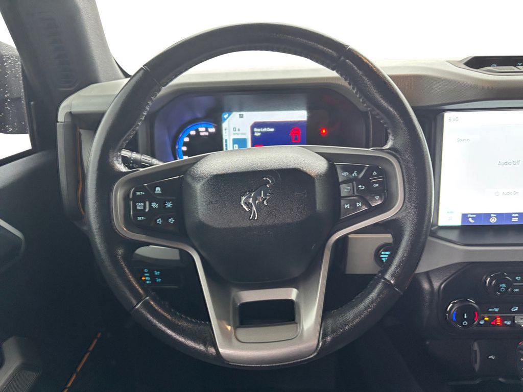 2022 Ford Bronco Badlands Carbonized Gray Metallic Badlands 4WD 10-Speed Automatic 2.7L EcoBoost V6 4-Wheel Disc Brakes, 6 Speakers, ABS brakes, Air Conditioning, AM/FM radio: SiriusXM with 360L, AM/FM Stereo, Auto High-beam Headlights, Brake assist, Compass, Delay-off headlights, Driver door bin, Driver vanity mirror, Dual front impact airbags, Dual front side impact airbags, Electronic Stability Control, Emergency communication system: 911 Assist, Exterior Parking Camera Rear, Front & Rear Floor Liners w/o Carpet Floor Mats, Front anti-roll bar, Front Bucket Seats, Front Center Armrest, Front License Plate Bracket, Front reading lights, Front wheel independent suspension, Fully automatic headlights, Heated door mirrors, Illuminated entry, Integrated roll-over protection, Low tire pressure warning, Occupant sensing airbag, Outside temperature display, Overhead airbag, Overhead console, Panic alarm, Passenger door bin, Passenger vanity mirror, Power door mirrors, Power steering, Power windows, Radio data system, Remote keyless entry, Security system, SiriusXM Radio w/360L, Speed control, Split folding rear seat, Steering wheel mounted audio controls, SYNC 4, Tachometer, Telescoping steering wheel, Tilt steering wheel, Traction control, Trip computer, Variably intermittent wipers, Wheels: 17" Black High Gloss-Painted Aluminum.