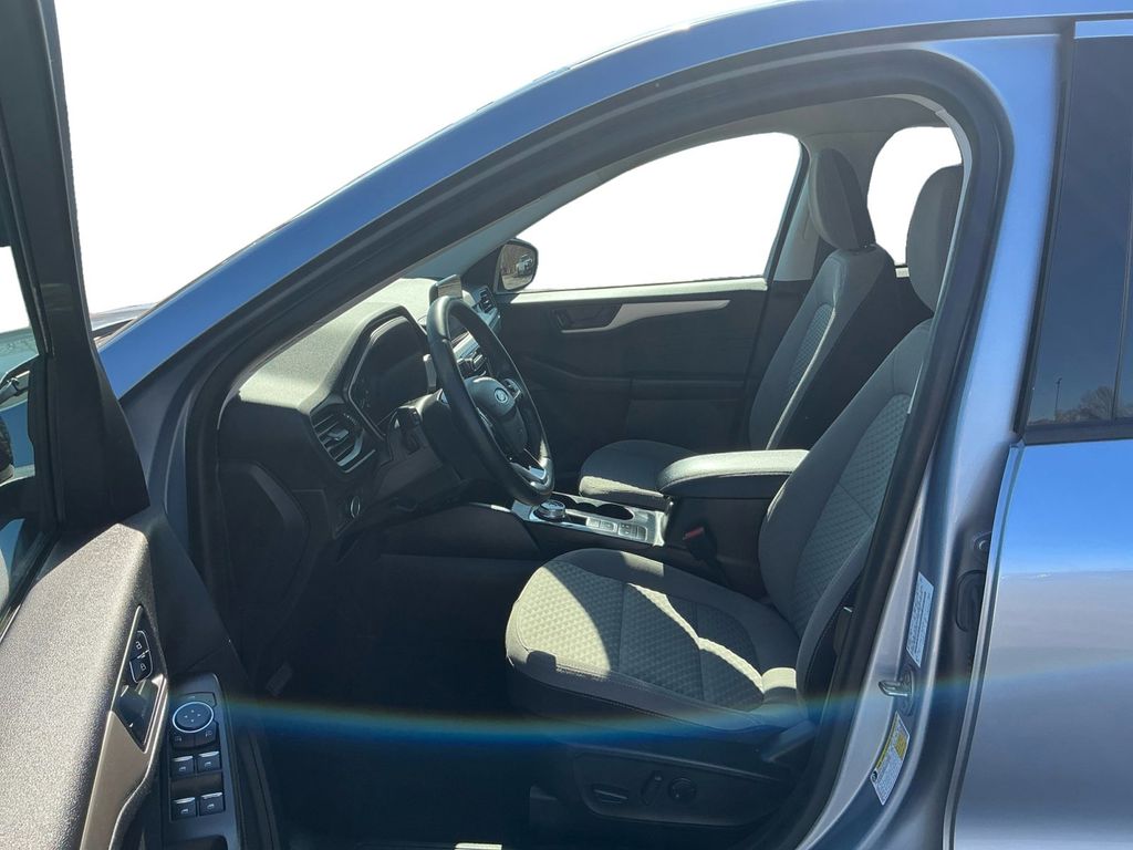 2022 Ford Escape SE Iced Blue Silver Metallic SE FWD 8-Speed Automatic 1.5L EcoBoost 3.81 Axle Ratio, 4-Wheel Disc Brakes, 4G LTE Wi-Fi Hotspot Removal, 6 Speakers, 8-Way Power Driver Seat, ABS brakes, Air Conditioning, Alloy wheels, AM/FM radio: SiriusXM, AM/FM Stereo, Auto High-beam Headlights, Brake assist, Bumpers: body-color, Cold Weather Package, Compass, Convenience Package, Delay-off headlights, Driver door bin, Driver vanity mirror, Dual front impact airbags, Dual front side impact airbags, Dual-Zone Electronic Automatic Temperature Control, Electronic Automatic Temperature Control (EATC), Electronic Stability Control, Emergency communication system: SYNC 3 911 Assist, Equipment Group 200A, Exterior Parking Camera Rear, Fold-Down Rear Center Armrest w/2 Cupholders, FordPass Connect, Four wheel independent suspension, Front anti-roll bar, Front Bucket Seats, Front Center Armrest, Front reading lights, Fully automatic headlights, Halogen Projector Headlamps w/LED Signature, Heated & Premium Wrapped Steering Wheel, Heated Front Row Seats, Heated Sideview Mirrors, Illuminated entry, Knee airbag, Low tire pressure warning, Occupant sensing airbag, Outside temperature display, Overhead airbag, Overhead console, Panic alarm, Passenger door bin, Passenger vanity mirror, Power door mirrors, Power Liftgate, Power steering, Power windows, Radio data system, Rear anti-roll bar, Rear reading lights, Rear window defroster, Rear window wiper, Remote keyless entry, Remote Start System w/86C, Speed control, Speed-sensing steering, Speed-Sensitive Wipers, Split folding rear seat, Spoiler, Steering wheel mounted audio controls, SYNC 3 Communications & Entertainment System, Tachometer, Telescoping steering wheel, Tilt steering wheel, Traction control, Trip computer, Unique Cloth Front Bucket Seats, Variably intermittent wipers, Wheels: 17" Shadow Silver-Painted Aluminum.