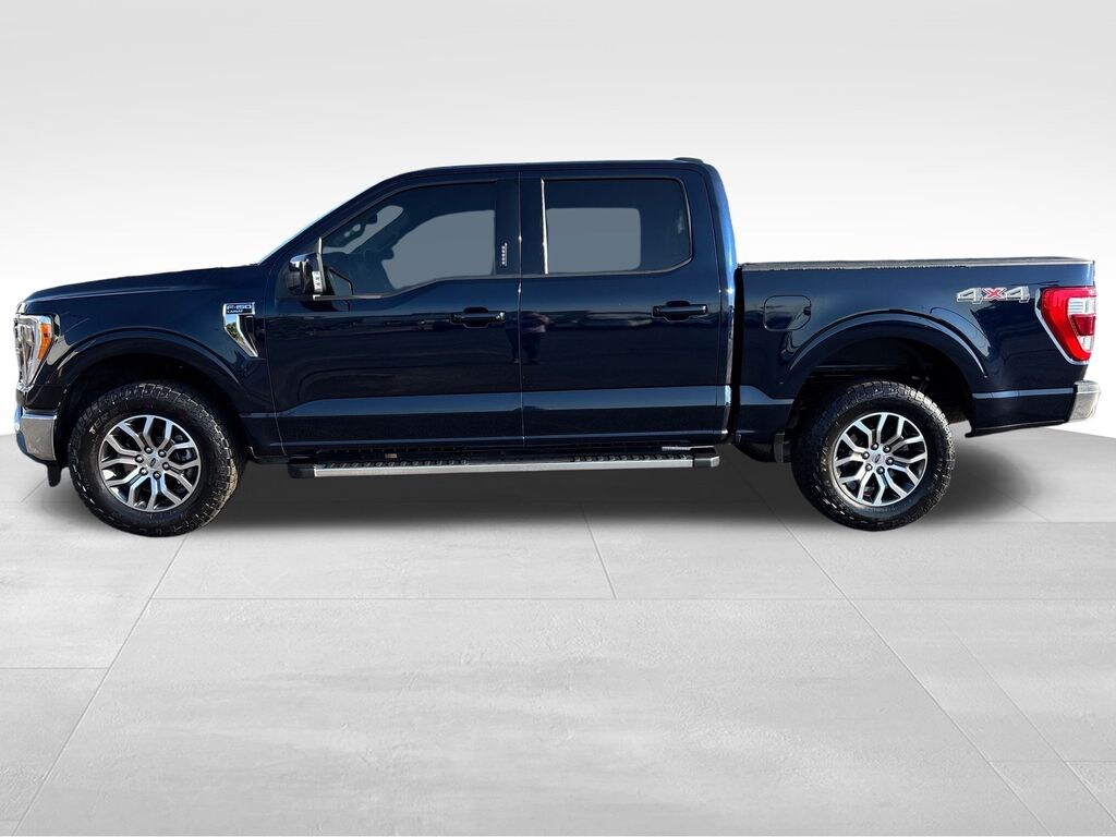2022 Ford F-150 Lariat Antimatter Blue Metallic Lariat 4WD 10-Speed Automatic 5.0L V8 4WD, 18" Machined-Aluminum Wheels, 4-Wheel Disc Brakes, 6" Bright Polished Running Board, 7 Speakers, ABS brakes, Adjustable pedals, Air Conditioning, Alloy wheels, AM/FM radio: SiriusXM with 360L, Auto High-beam Headlights, Auto Start-Stop Removal, Auto-dimming door mirrors, Auto-dimming Rear-View mirror, Automatic temperature control, Brake assist, Bumpers: chrome, Class IV Trailer Hitch Receiver, Compass, Delay-off headlights, Driver door bin, Driver vanity mirror, Dual front impact airbags, Dual front side impact airbags, Electronic Stability Control, Emergency communication system: SYNC 4 911 Assist, Equipment Group 500A Standard, Exterior Parking Camera Rear, Front anti-roll bar, Front Center Armrest w/Storage, Front dual zone A/C, Front fog lights, Front reading lights, Front wheel independent suspension, Fully automatic headlights, Heated door mirrors, Heated front seats, Illuminated entry, Integrated Trailer Brake Controller, Leather-Trimmed 40/20/40 Front Seat, Leather-Trimmed Bucket Seats, Low tire pressure warning, Memory seat, Occupant sensing airbag, Onboard 400W Outlet, Outside temperature display, Overhead airbag, Overhead console, Panic alarm, Passenger door bin, Passenger vanity mirror, Pedal memory, Power door mirrors, Power driver seat, Power passenger seat, Power steering, Power windows, Pro Trailer Backup Assist, Radio data system, Radio: AM/FM SiriusXM w/360L, Rear reading lights, Rear seat center armrest, Rear step bumper, Rear window defroster, Remote keyless entry, Security system, Speed control, Speed-sensing steering, Split folding rear seat, Steering wheel mounted audio controls, SYNC 4 w/Enhanced Voice Recognition, Tachometer, Telescoping steering wheel, Tilt steering wheel, Traction control, Trailer Tow Package, Tray Style Floor Liner (47W), Trip computer, Turn signal indicator mirrors, Variably intermittent wipers, Ventilated front seats, Voltmeter, 4WD.