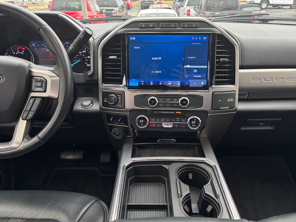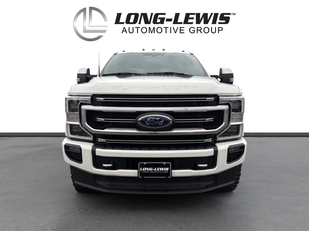 2022 Ford F-250SD Platinum White Platinum 4WD 10-Speed Automatic Power Stroke 6.7L V8 DI 32V OHV Turbodiesel 4WD, 10 Speakers, 397 Amp Alternator, 4-Wheel Disc Brakes, 5th Wheel/Gooseneck Hitch Prep Package, ABS brakes, Adaptive Steering, Adjustable pedals, Air Conditioning, Alloy wheels, AM/FM radio: SiriusXM with 360L, Auto High-beam Headlights, Auto-dimming Rear-View mirror, Automatic temperature control, Brake assist, Compass, Delay-off headlights, Driver door bin, Driver vanity mirror, Dual front impact airbags, Dual front side impact airbags, Electronic Stability Control, Emergency communication system: SYNC 4 911 Assist, Engine Block Heater, Exterior Parking Camera Rear, Flow-Through Console, Front anti-roll bar, Front Bucket Seats, Front Center Armrest, Front dual zone A/C, Front fog lights, Front reading lights, Fully automatic headlights, FX4 Off-Road Package, Gooseneck Hitch Kit (Pre-Installed), GVWR: 10,000 lb Payload Package, Heated door mirrors, Hill Descent Control, Illuminated entry, Leather steering wheel, LED Roof Clearance Lights, Low tire pressure warning, Navigation system: Connected Navigation, Off-Road Specifically Tuned Shock Absorbers, Outside temperature display, Overhead airbag, Overhead console, Panic alarm, Passenger door bin, Passenger vanity mirror, Power door mirrors, Power driver seat, Power passenger seat, Power steering, Power windows, Radio data system, Radio: B&O Sound System by Bang & Olufsen, Rapid-Heat Supplemental Cab Heater, Rear Parking Sensors, Rear reading lights, Rear seat center armrest, Rear step bumper, Rear window defroster, Remote keyless entry, Security system, SiriusXM Radio w/360L, Speed control, Split folding rear seat, Steering wheel mounted audio controls, SYNC 4 w/Enhanced Voice Recognition, Tachometer, Telescoping steering wheel, Tilt steering wheel, Traction control, Trip computer, Turn signal indicator mirrors, Twin Panel Power Moonroof, Ultimate Trailer Tow Camera System, Unique FX4 Off-Road Box Decal, Upfitter Switches (6), Variably intermittent wipers, 4WD.