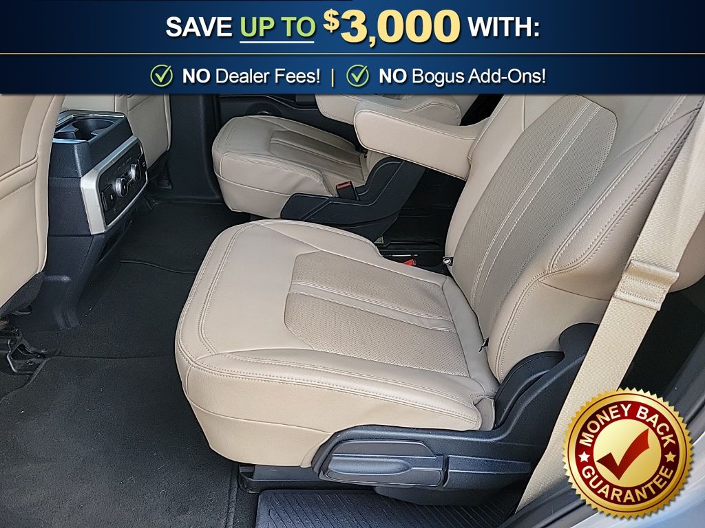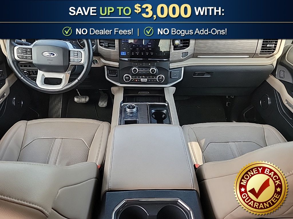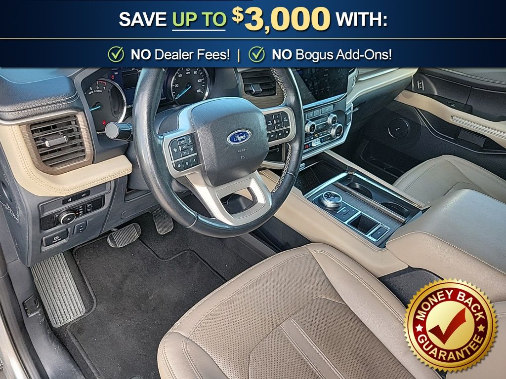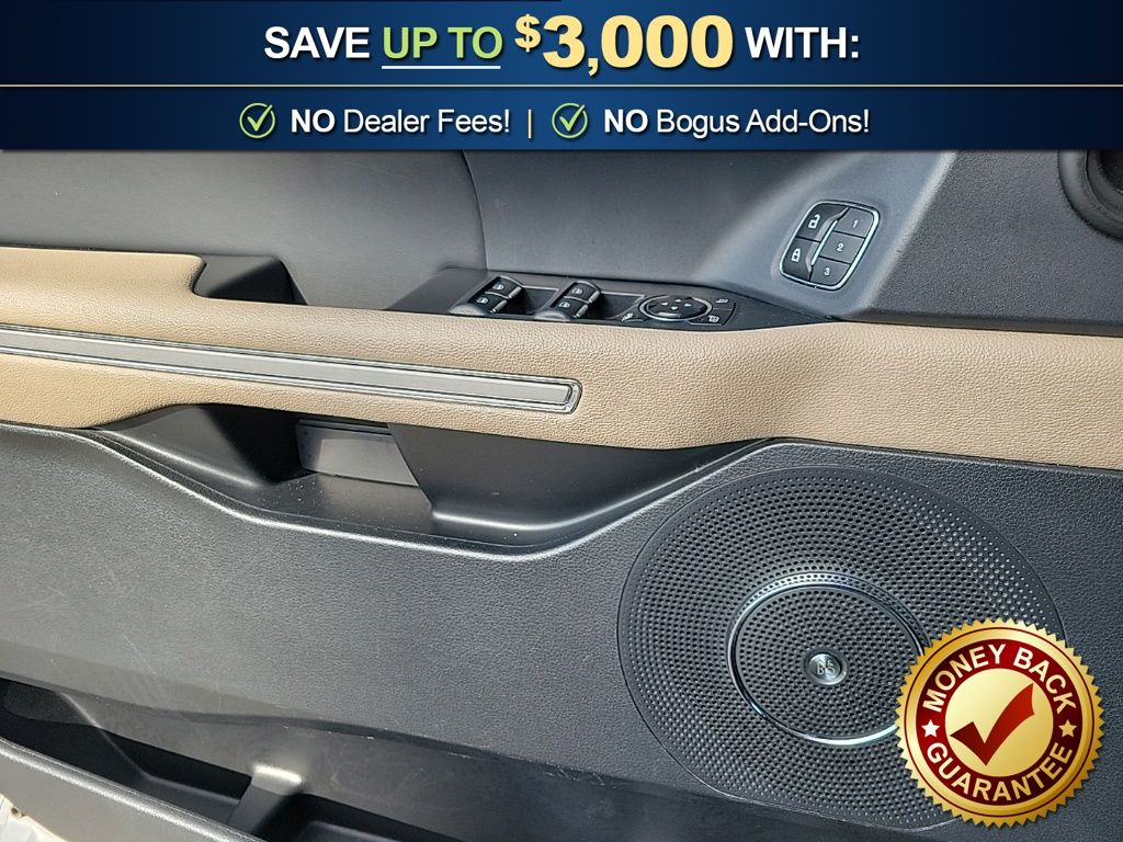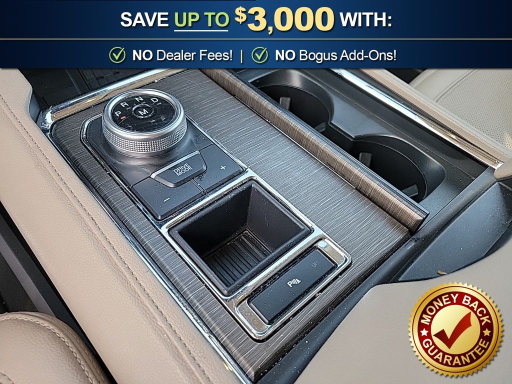 12 Speakers, 3.31 Axle Ratio, 3rd row seats: split-bench, 4-Wheel Disc Brakes, ABS brakes, Adjustable pedals, Air Conditioning, Alloy wheels, AM/FM radio, Auto High-beam Headlights, Auto-dimming door mirrors, Auto-dimming Rear-View mirror, Automatic temperature control, Brake assist, Bumpers: body-color, Compass, Delay-off headlights, Driver door bin, Driver vanity mirror, Dual front impact airbags, Dual front side impact airbags, Electronic Stability Control, Emergency communication system: SYNC 4 911 Assist, Equipment Group 301A Mid Package, Exterior Parking Camera Rear, Four wheel independent suspension, Front anti-roll bar, Front Bucket Seats, Front Center Armrest, Front dual zone A/C, Front fog lights, Front License Plate Bracket, Front reading lights, Fully automatic headlights, Garage door transmitter, Heated & Ventilated Leather Front Captain's Chairs, Heated door mirrors, Heated front seats, Heated rear seats, Heated steering wheel, Illuminated entry, Leather steering wheel, Low tire pressure warning, Memory seat, Navigation System, Occupant sensing airbag, Outside temperature display, Overhead airbag, Overhead console, Panic alarm, Passenger door bin, Passenger vanity mirror, Pedal memory, Power door mirrors, Power driver seat, Power Liftgate, Power moonroof, Power passenger seat, Power steering, Power windows, Radio data system, Radio: B&O Sound System by Bang & Olufsen, Rain sensing wipers, Rear air conditioning, Rear anti-roll bar, Rear reading lights, Rear window defroster, Rear window wiper, Reclining 3rd row seat, Remote keyless entry, Second Row Power Windows Removal, Security system, SiriusXM w/360L, Speed control, Speed-sensing steering, Speed-Sensitive Wipers, Split folding rear seat, Spoiler, Steering wheel memory, Steering wheel mounted audio controls, SYNC 4 w/Enhanced Voice Recognition, Tachometer, Telescoping steering wheel, Tilt steering wheel, Traction control, Trip computer, Turn signal indicator mirrors, Variably intermittent wipers, Ventilated front seats, Voltmeter, Wheels: 20" Bright Machined Aluminum.