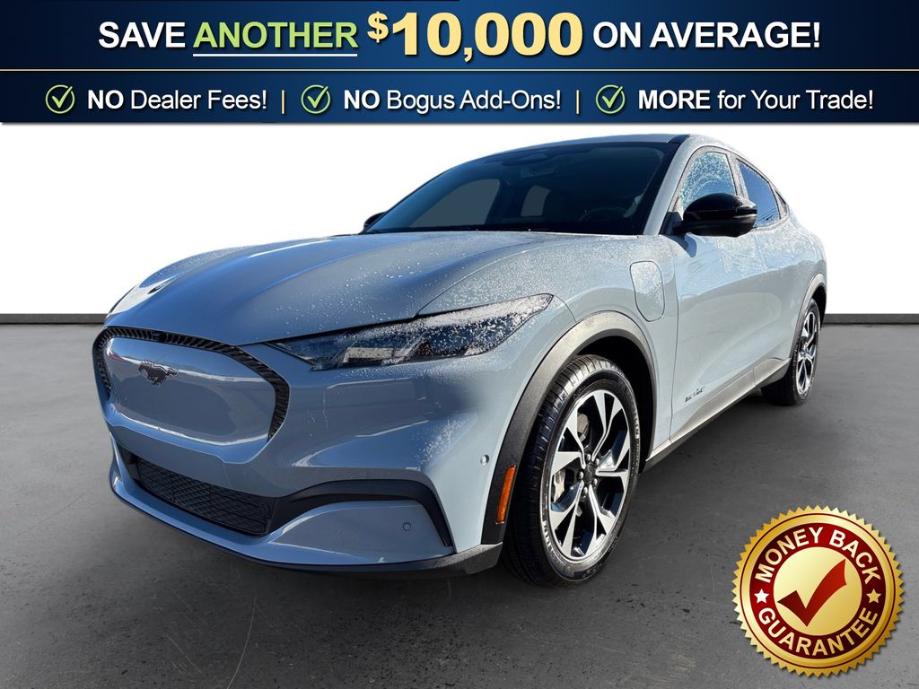 2024 Ford Mustang Mach-E Select Glacier Gray Metallic TriCoat Select RWD Single-Speed Automatic Dual Electric Motor 4-Wheel Disc Brakes, 6 Speakers, ABS brakes, ActiveX Bucket Seats, Air Conditioning, Alloy wheels, AM/FM radio: SiriusXM with 360L, AM/FM Stereo, Apple CarPlay/Android Auto, Auto High-beam Headlights, Auto-dimming Rear-View mirror, Automatic temperature control, Axle Ratio: 9.791, Brake assist, Bumpers: body-color, Comfort Package Lite, Compass, Delay-off headlights, Driver door bin, Driver vanity mirror, Dual front impact airbags, Dual front side impact airbags, Electronic Stability Control, Emergency communication system: 911 Assist, Equipment Group 100A, Exterior Parking Camera Rear, Four wheel independent suspension, Front anti-roll bar, Front Bucket Seats, Front Center Armrest, Front dual zone A/C, Front License Plate Bracket, Front reading lights, Fully automatic headlights, Garage door transmitter, Heated door mirrors, Heated Front Row Seats, Heated Steering Wheel, Illuminated entry, Knee airbag, Low tire pressure warning, Memory Driver's Seat & Sideview Mirrors, Mobile Power Cord (120V/240V), Navigation system: Connected Navigation, Occupant sensing airbag, Outside temperature display, Overhead airbag, Overhead console, Panic alarm, Passenger door bin, Passenger vanity mirror, Power door mirrors, Power driver seat, Power steering, Power windows, Radio data system, Rain sensing wipers, Rear anti-roll bar, Rear seat center armrest, Rear side impact airbag, Rear window defroster, Rear window wiper, Remote keyless entry, Security system, SiriusXM Radio w/360L, Speed control, Speed-sensing steering, Speed-Sensitive Wipers, Split folding rear seat, Spoiler, Steering wheel mounted audio controls, SYNC 4A w/Enhanced Voice Recognition, Telescoping steering wheel, Tilt steering wheel, Traction control, Trip computer, Turn signal indicator mirrors, Variably intermittent wipers, Wheels: 19" Machined-Face Aluminum.