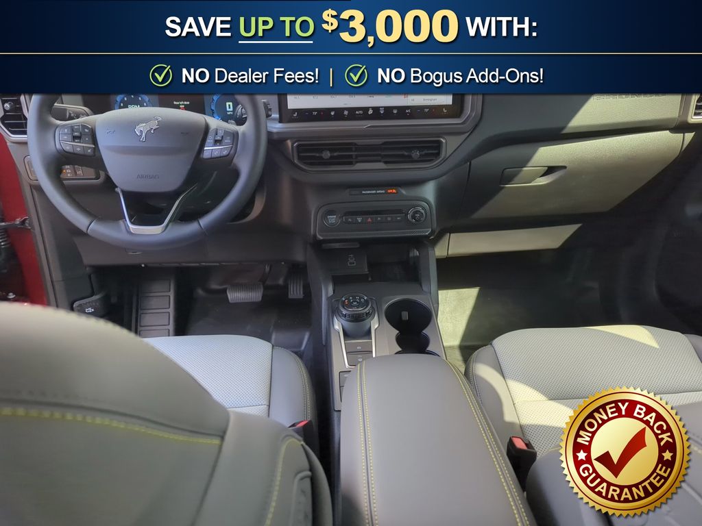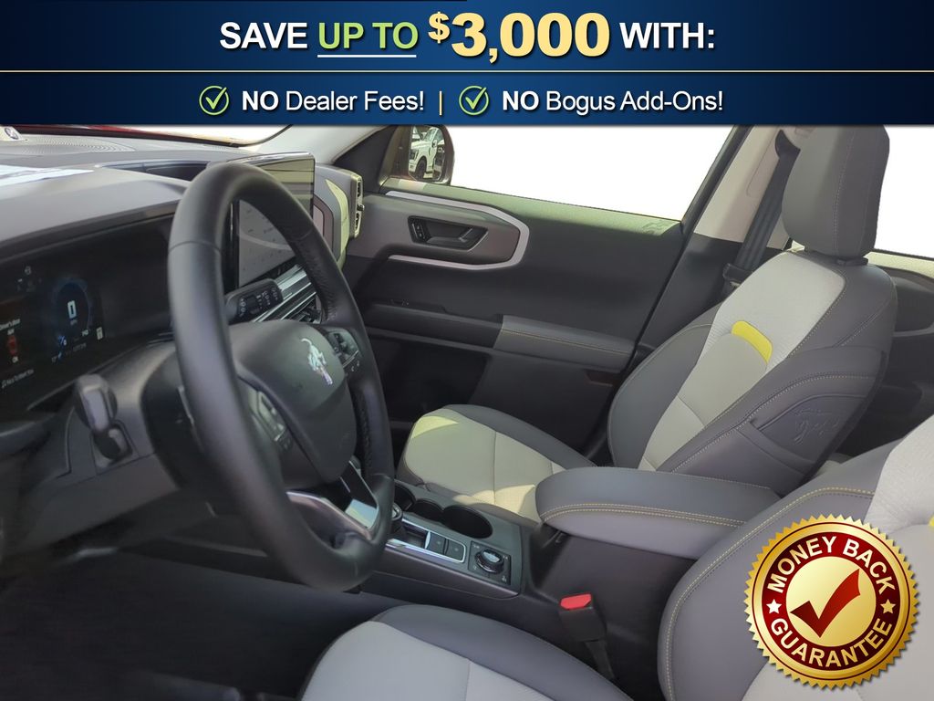 I got a 2025 Big Bend with the black diamond off road package. The steel modular front and rear in combination with bush guard gives this year model. A very aggressive off road look. With the ability to easily mount accessories and power them with the factory installed auxiliary switches. Hitch receiver seamlessly mounted into the rear steel bumper flanked by some very chunky recovery points. The upgraded aluminum rims wrapped with Continental all-terrains. It make this the most capable bronco sport yet. The interior of the 2025 has been updated with a new 13 inch touchscreen with Android Auto and apple car play. The lines of the dash flow elegantly from the new infotainment screen to the new all digital 12 inch gauge chaster. Toggling through the different modes on the gauge chaster is very intuitive, and all the displays are laid out very cleanly. Moving from gauge chaster the center storage cubby just below the infotainment screen there is a wireless charger and USB/ USB-c ports. The passenger side of that same cubby gets a handle and a matching one on the roof just in case the driver bucks a little too much. The passenger also gets a mesh storage area. That leads us to the fact this vehicle has tons of storage options all throughout. You have pockets on the sides of the front two seat big enough for the latest new phones. Very generous door storage on all four doors plus huge glove box and center console with 12 volt outlet. The back side of the center console has air vents and another 12 volt outlet plus a 110 outlet. Now getting to the cargo area it is massive for a crossover SUV. With off road package you get a cargo management system and a very nice rubber mat. Under that there is a full size tire plus scissor jack and funnel to use with the capless filler system. On the liftgate there isa pair of very bright led lights turned on with a switch in the cargo area. This feature packed vehicle has tons awesome gadgets and hidden a little homages I spend all day just talk that. At the end of the day it is car. So how does it drive. It is wonderful, the steering and pedal response is beautiful. Rides very smooth and little to no road noise going down the highway. The active cruise control and co-pilot 360 have been very handy. The car literally drives itself most of the time. There is not enough good things I could same about this car. I love it and you pick one too. You will see what I mean. - 5.0