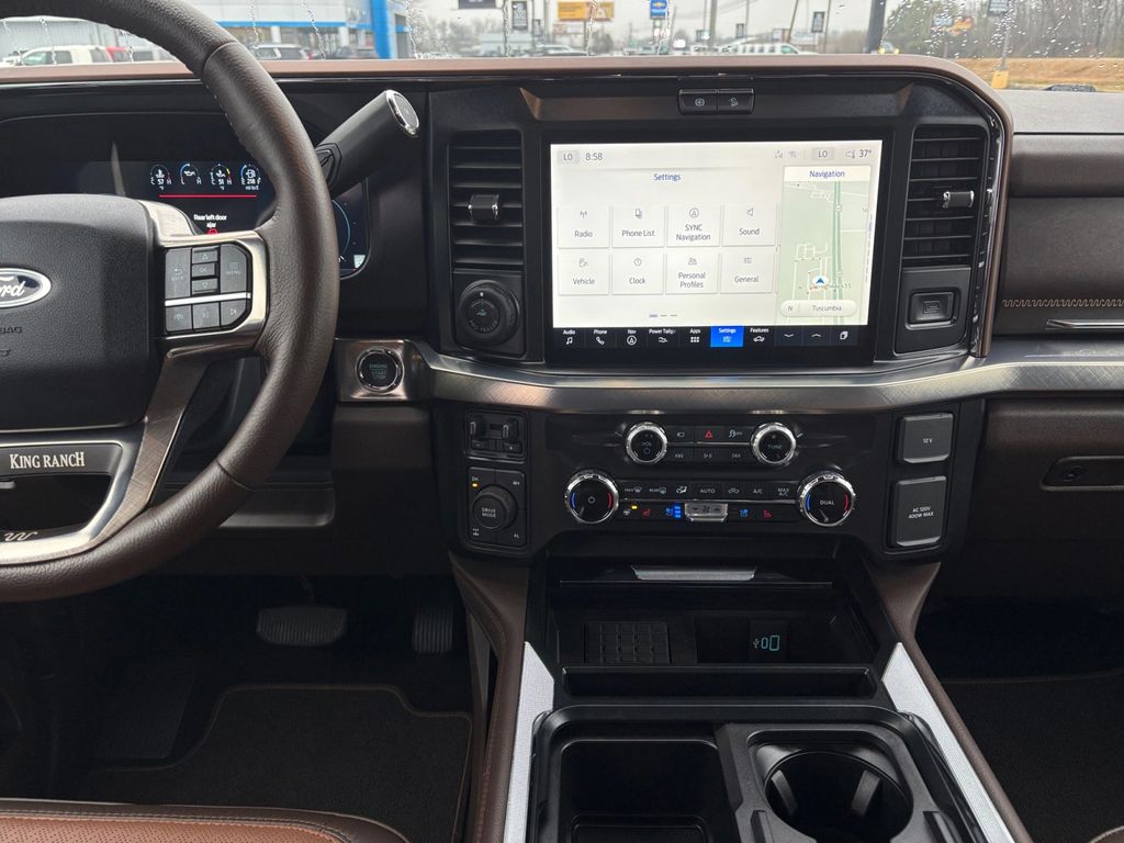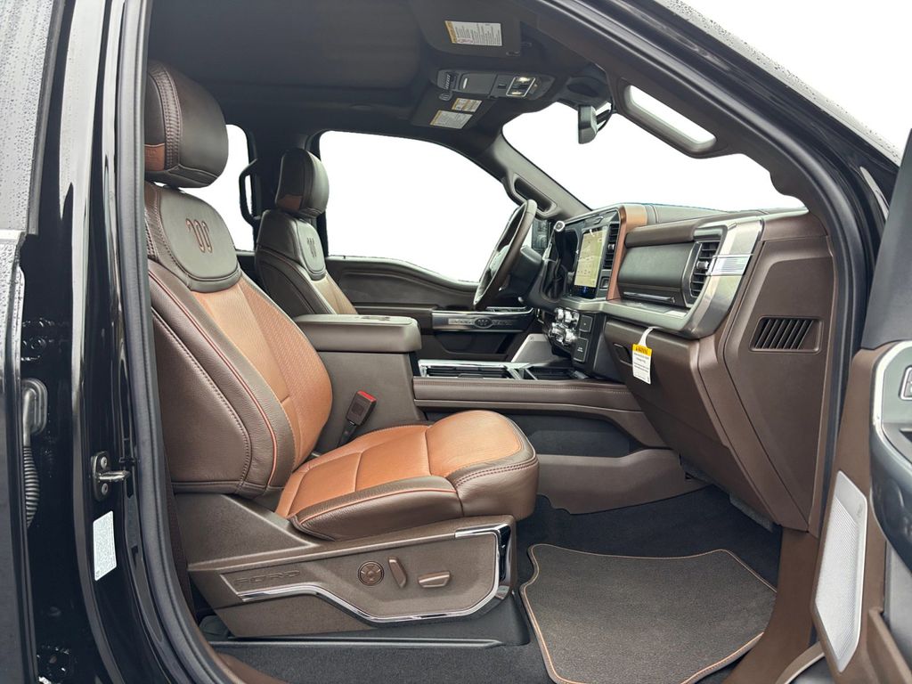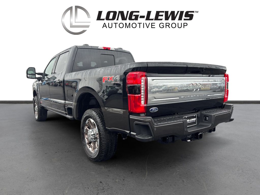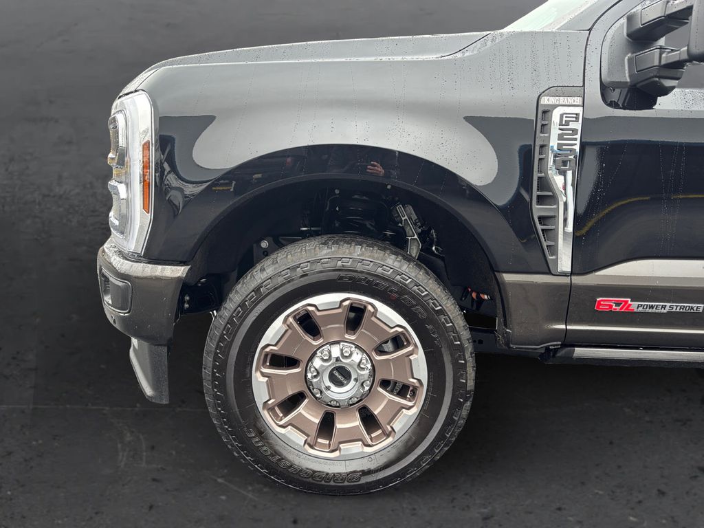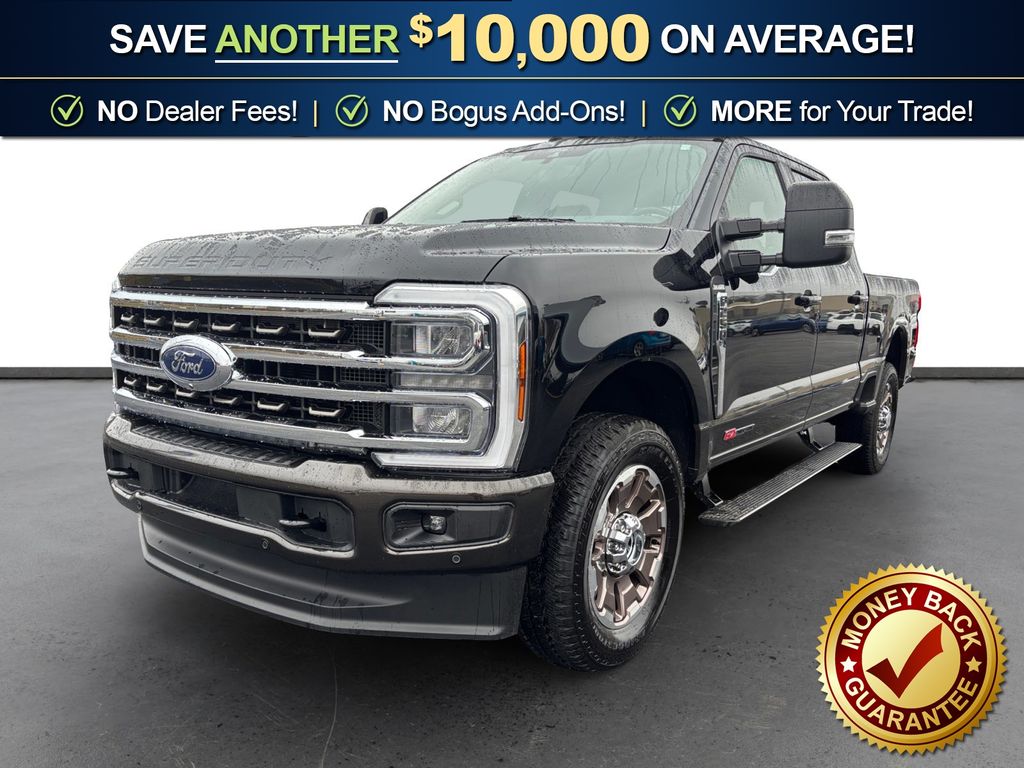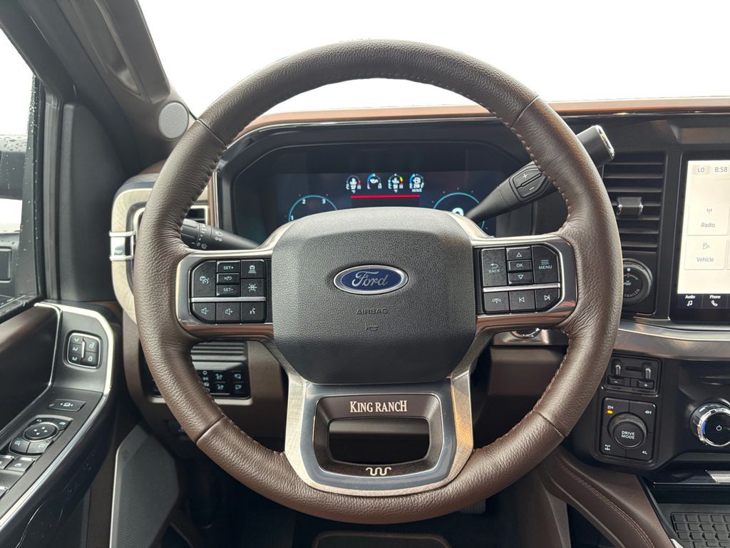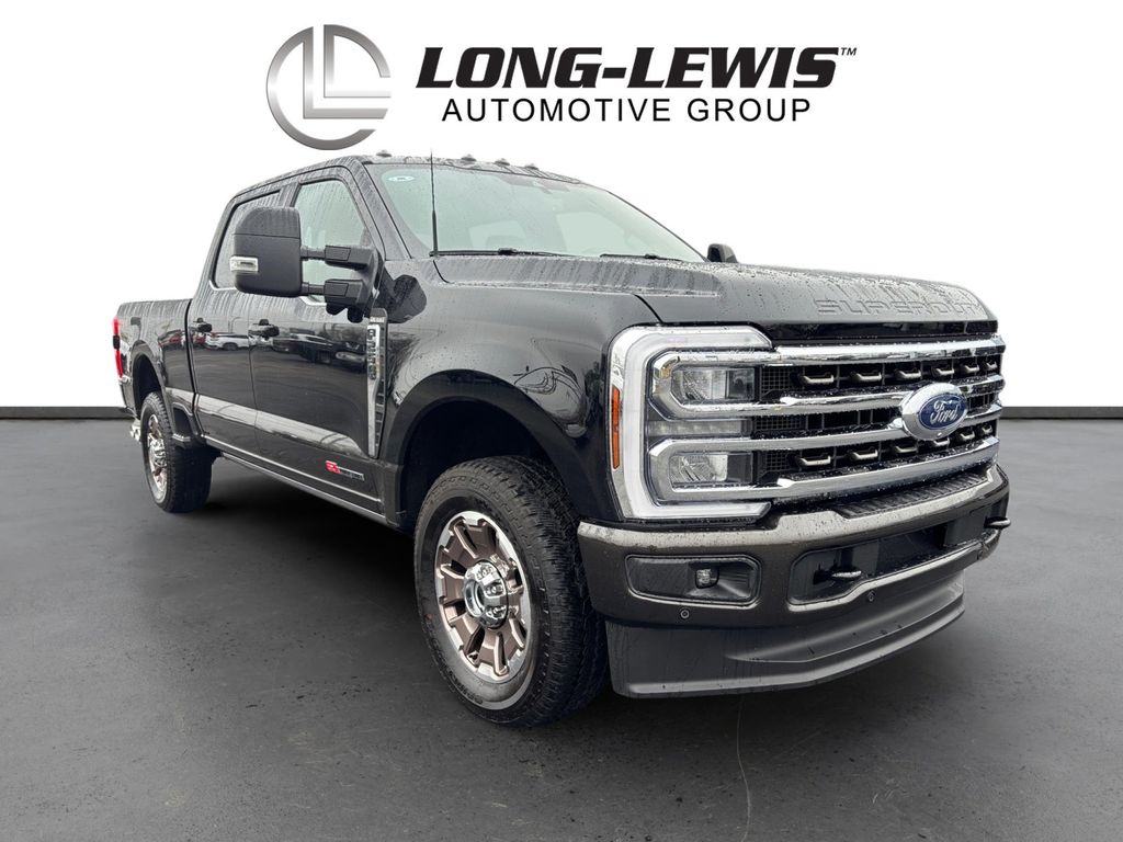 2025 Ford F-250SD King Ranch Agate Black Metallic King Ranch 4WD 10-Speed Automatic 6.7L High Output Power Stroke V8 Diesel 4WD, 14 Speakers, 4-Wheel Disc Brakes, 410 Amp Dual Alternators, 5th Wheel/Gooseneck Hitch Prep Package, ABS brakes, Adjustable pedals, Air Conditioning, Alloy wheels, AM/FM radio: SiriusXM with 360L, Auto High-beam Headlights, Auto tilt-away steering wheel, Auto-dimming Rear-View mirror, Automatic temperature control, Brake assist, Compass, Delay-off headlights, Driver door bin, Driver vanity mirror, Dual front impact airbags, Dual front side impact airbags, Electronic Stability Control, Emergency communication system: SYNC 4 911 Assist, Engine Block Heater, Flow-Through Console, Front anti-roll bar, Front Bucket Seats, Front Center Armrest, Front dual zone A/C, Front fog lights, Front reading lights, Fully automatic headlights, FX4 Off-Road Package, Garage door transmitter, GVWR: F-250 >10K Package, Heads-Up Display, Heated door mirrors, Heated front seats, Heated rear seats, Heated steering wheel, High Capacity 11.6" Axle Upgrade Package, Hill Descent Control, Illuminated entry, Internet access capable: FordPass Connect 5G, Leather steering wheel, LED Roof Clearance Lights, Low tire pressure warning, Memory seat, Navigation System, Off-Road Specifically Tuned Shock Absorbers, Order Code 700A, Outside temperature display, Overhead airbag, Overhead console, Panic alarm, Passenger door bin, Passenger vanity mirror, Pedal memory, Power door mirrors, Power driver seat, Power passenger seat, Power steering, Power windows, Radio: B&O Unleashed Sound System by Bang & Olufsen, Rain sensing wipers, Rapid-Heat Supplemental Cab Heater, Rear reading lights, Rear seat center armrest, Rear step bumper, Rear window defroster, Remote keyless entry, Security system, SiriusXM Radio with 360L, Speed control, Split folding rear seat, Steering wheel memory, Steering wheel mounted A/C controls, Steering wheel mounted audio controls, SYNC 4 with Enhanced Voice Recognition, Tachometer, Telescoping steering wheel, Tilt steering wheel, Traction control, Trip computer, Turn signal indicator mirrors, Twin Panel Power Moonroof, Unique FX4 Off-Road Box Decal, Unique King Ranch Leather 40/Console/40 Seats, Upfitter Switches (6), Variably intermittent wipers, Ventilated front seats, Wheels: 20" Bright Machined Cast Aluminum, 4WD.