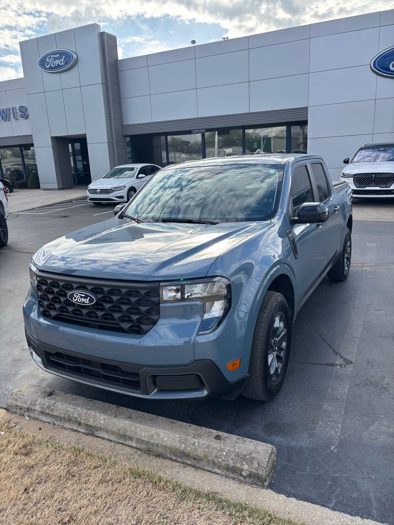 2025 Ford Maverick XLT Azure Gray Metallic XLT FWD CVT 2.5L I-4 Hybrid 2.5L I-4 Hybrid, 2.91 Axle Ratio, 4-Wheel Disc Brakes, 400W Inverter w/USB Console Rear, 6 Speakers, ABS brakes, Air Conditioning, Alloy wheels, AM/FM radio: SiriusXM with 360L, Apple CarPlay/Android Auto, Auto High Beams, Auto High-beam Headlights, Automatic temperature control, Brake assist, Bumpers: body-color, Compass, Delay-off headlights, Driver door bin, Driver vanity mirror, Dual front impact airbags, Dual front side impact airbags, Electronic Stability Control, Emergency communication system: SYNC 4 911 Assist, Equipment Group 300A, Exterior Parking Camera Rear, Front anti-roll bar, Front Bucket Seats, Front Center Armrest, Front reading lights, Front wheel independent suspension, Fully automatic headlights, Heated Mirror w/Painted Black Skull Caps, Heated Seats, Illuminated entry, Internet access capable: FordPass Connect 5G, Knee airbag, LED Box Lighting, Low tire pressure warning, Occupant sensing airbag, Outside temperature display, Overhead airbag, Overhead console, Panic alarm, Passenger door bin, Passenger vanity mirror, Power door mirrors, Power steering, Power windows, Pre-Collision Assist w/Automatic Emergency Braking, Radio data system, Radio: AM/FM Stereo w/6 Speakers, Rear anti-roll bar, Rear seat center armrest, Rear step bumper, Rear-View Camera, Remote keyless entry, Remote Start System, Security system, SiriusXM w/360L, Soft Vinyl Wrapped Heated Steering Wheel, Speed control, Speed-sensing steering, Steering wheel mounted audio controls, SYNC 4 w/Enhanced Voice Recognition, Telescoping steering wheel, Tilt steering wheel, Traction control, Trip computer, Unique Cloth Front Bucket Seats, Wheels: 17" Carbonized Gray Painted Aluminum, XLT Luxury Package, 2.5L I-4 Hybrid.