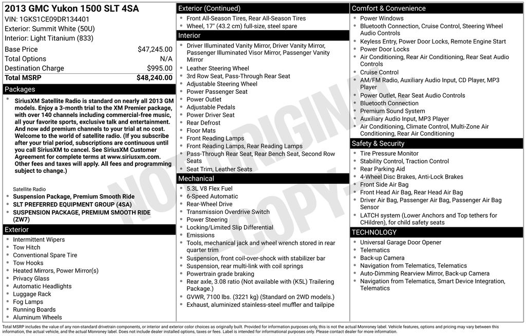 2013 GMC Yukon SLT SUV Vortec V8 SFI Flex Fuel