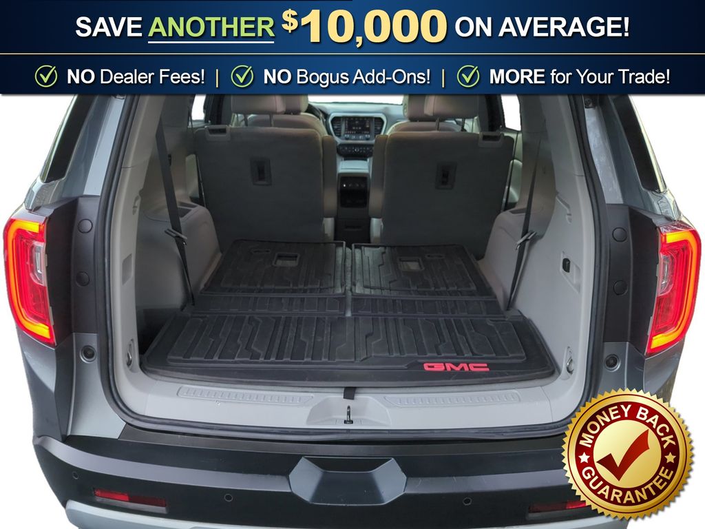 FWD, Cocoa/Light Ash Gray Leather, 155 Amp Alternator, 18" Machined Aluminum Wheels, 1st & 2nd Row All-Weather Floor Liner (LPO), 3rd Row All-Weather Floor Liner (LPO), 3rd row seats: split-bench, 4-Way Manual Passenger Seat Adjuster, 4-Wheel Disc Brakes, 6 Speakers, 6-Passenger (2-2-2 Seating Configuration), 6-Speaker Audio System Feature, 8-Way Power Driver Seat Adjuster, ABS brakes, Air Conditioning, Alloy wheels, AM/FM radio: SiriusXM, Apple CarPlay/Android Auto, Auto-dimming door mirrors, Auto-dimming Rear-View mirror, Automatic temperature control, Brake assist, Bumpers: body-color, Compass, Delay-off headlights, Driver door bin, Driver vanity mirror, Dual front impact airbags, Dual front side impact airbags, Dual SkyScape 2-Panel Power Sunroof, Electronic Stability Control, Emergency communication system: OnStar and GMC connected services capable, Floor Liner Package (LPO), Four wheel independent suspension, Front anti-roll bar, Front Bucket Seats, Front Center Armrest, Front dual zone A/C, Front fog lights, Front reading lights, Fully automatic headlights, Garage door transmitter, Heated door mirrors, Heated Driver & Front Passenger Seats, Heated front seats, Illuminated entry, Integrated Cargo Liner (LPO), Knee airbag, Low tire pressure warning, Occupant sensing airbag, Outside temperature display, Overhead airbag, Overhead console, Panic alarm, Passenger door bin, Passenger vanity mirror, Perforated Leather-Appointed Seat Trim, Power door mirrors, Power Driver Lumbar Control Seat Adjuster, Power driver seat, Power Liftgate, Power steering, Power windows, Preferred Equipment Group 4SA, Premium audio system: GMC Infotainment System, Radio data system, Radio: AM/FM 8" Diagonal Multi-Touch Nav (DISC), Radio: AM/FM 8" Diagonal Multi-Touch Navigation, Rear air conditioning, Rear anti-roll bar, Rear reading lights, Rear window defroster, Rear window wiper, Remote keyless entry, Roof rack: rails only, Security system, SiriusXM Radio, SiriusXM w/360L, Speed control, Speed-sensing steering, Spoiler, Steering wheel mounted audio controls, Tachometer, Telescoping steering wheel, Tilt steering wheel, Traction control, Trip computer, Turn signal indicator mirrors, Variably intermittent wipers, Voltmeter, FWD, Cocoa/Light Ash Gray Leather.