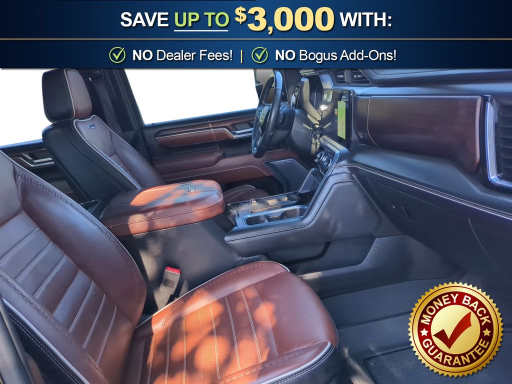 Priced below KBB Fair Purchase Price! 10-Speed Automatic, 4WD, Alpine Umber Leather, 12 Speakers, 120-Volt Bed Mounted Power Outlet, 120-Volt Instrument Panel Power Outlet, 16-Way Power Driver Seat Adjuster w/Lumbar, 16-Way Power Passenger Seat Adjuster w/Lumbar, 2 Charge-Only Rear USB Ports, 2 Charge/Data USB Ports Inside Center Console, 2 USB Ports, 2-Speed Active Transfer Case, 220-Amp Alternator, 3.42 Axle Ratio, 4-Wheel Disc Brakes, ABS brakes, Air Conditioning, Alloy wheels, AM/FM radio: SiriusXM with 360L, Apple CarPlay/Android Auto, Auto High-beam Headlights, Auto-dimming door mirrors, Auto-dimming Rear-View mirror, Automatic Emergency Braking, Automatic temperature control, Bed View Camera w/2 Trailer Camera Provisions, Block heater, Bose Premium Series 12-Speaker System, Brake assist, Buckle to Drive, Bumpers: body-color, Compass, Deep-Tinted Glass, Delay-off headlights, Driver door bin, Driver Memory, Driver vanity mirror, Dual front impact airbags, Dual front side impact airbags, Dual Heavy-Duty 70 Amp Battery, Electric Rear-Window Defogger, Electronic Stability Control, Emergency communication system: OnStar and GMC connected services capable, Floor-Mounted Center Console, Following Distance Indicator, Forward Collision Alert, Front anti-roll bar, Front Bucket Seats, Front Center Armrest, Front dual zone A/C, Front fog lights, Front License Plate Kit, Front Pedestrian Braking, Front Prem Floor Liners w/Removable Carpet Insert, Front Rain-Sensing Wipers, Front reading lights, Front wheel independent suspension, Full Grain Leather Seat Trim, Fully automatic headlights, Garage door transmitter, Genuine wood dashboard insert, Genuine wood door panel insert, GMC Connected Access Capable, Gooseneck/5th Wheel Prep Package, HD Surround Vision, Heads-Up Display, Heated 2nd Row Outboard Seats, Heated door mirrors, Heated Driver & Front Outboard Passenger Seats, Heated front seats, Heated rear seats, Heated steering wheel, Heavy Duty Front Spring/Camper Package, Hill Descent Control, Hitch Guidance w/Hitch View, Hitch Package (LPO), Illuminated entry, In-Vehicle Trailering System App, Inside Rearview Auto-Dimming Rear Camera Mirror, Integrated Trailer Brake Controller, IntelliBeam Automatic High Beam On/Off, Keyless Open & Start, Lane Departure Warning System, Leather steering wheel, LED Cargo Area Lighting, LED Smoked Amber Roof Marker Lamps, Low tire pressure warning, Manual Tilt-Wheel/Telescoping Steering Column, Max Trailering Package, Memory seat, Multicolor 15" Diagonal Head-Up Display, Occupant sensing airbag, Off-Road Suspension, OnStar & GMC Connected Services Capable, Outside temperature display, Overhead airbag, Overhead console, Panic alarm, Passenger door bin, Passenger vanity mirror, Pickup Box, Power door mirrors, Power driver seat, Power Front Passenger Windows w/Express Up/Down, Power moonroof, Power passenger seat, Power Sliding Rear Window w/Defogger, Power steering, Power Sunroof, Power windows, Preferred Equipment Group 5SB, Premium audio system: Premium GMC Infotainment System, Push Button Start, Radio: AM/FM w/Premium GMC Infotainment System, Rain sensing wipers, Rear Cross Traffic Alert, Rear Prem Floor Liners w/Removable Carpet Insert, Rear reading lights, Rear seat center armrest, Rear step bumper, Rear Wheelhouse Liners, Rear window defroster, Remote keyless entry, Remote Vehicle Starter System, Safety Alert Seat, Security system, Signature Denali Grille in Vadar Chrome, SiriusXM w/360L, Speed control, Speed-sensing steering, Split folding rear seat, Spray-On Bedliner w/Denali Logo, Steering Wheel Audio Controls, Steering wheel mounted audio controls, Tachometer, Technology Package, Telescoping steering wheel, Tilt steering wheel, Traction control, Trailer Cam Provisions & Trailer Viewing Software, Trailer Side Blind Zone Alert, Trailer Tire Pressure Monitor Sensors, Trip computer, Turn signal indicator mirrors, Ultrasonic Front & Rear Park Assist, Unauthorized Entry Theft-Deterrent System, Univers