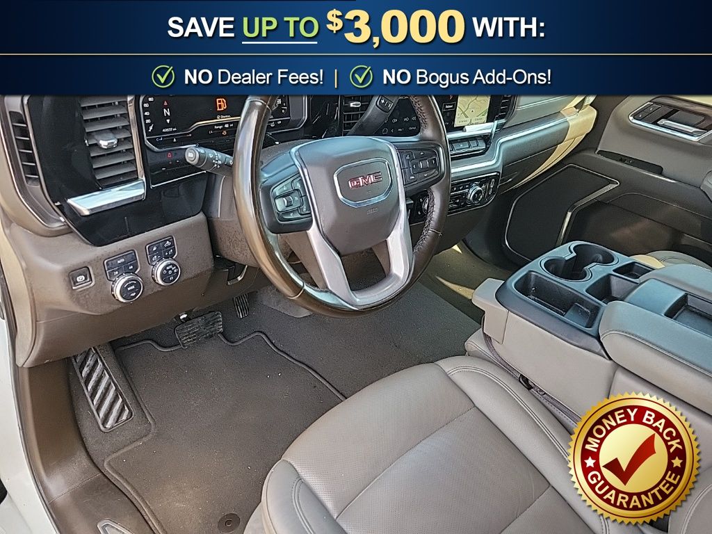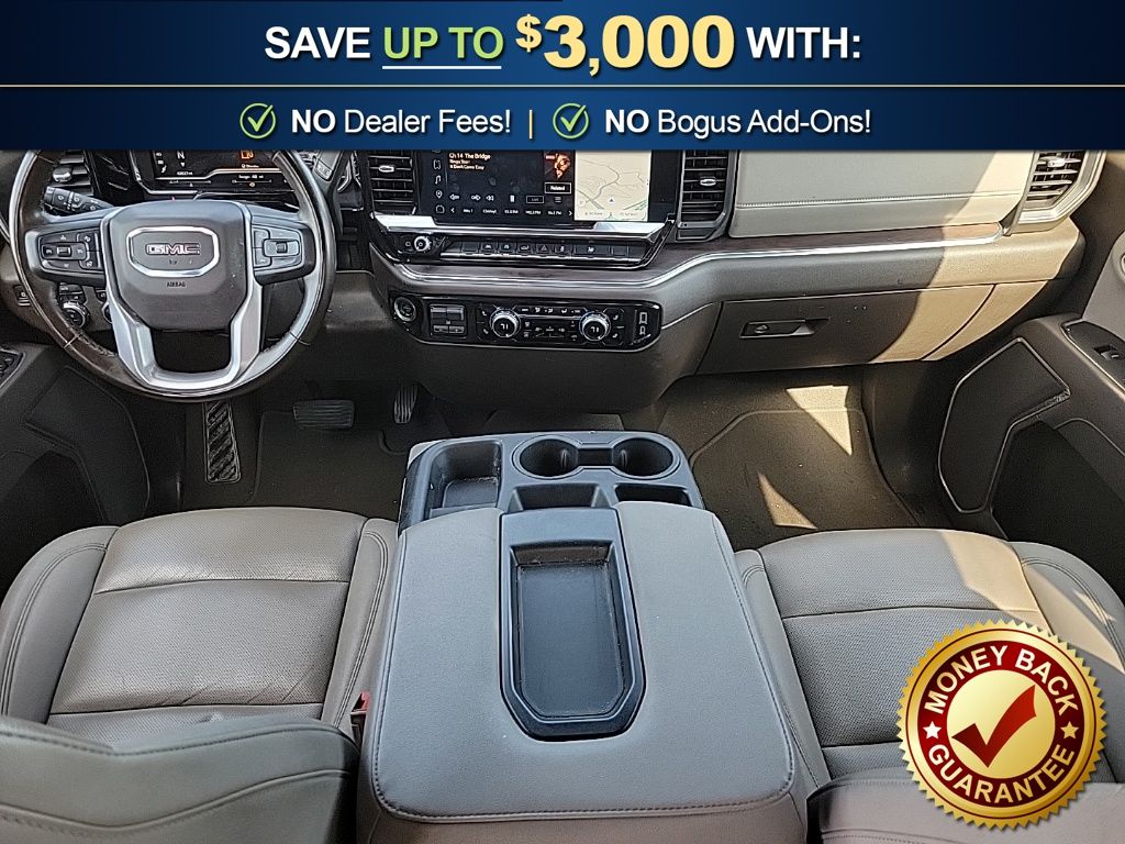 10-Speed Automatic, 4WD, Dark Walnut/Slate Leather, 10-Way Power Driver Seat Adjuster w/Lumbar, 10-Way Power Passenger Seat Adjuster w/Lumbar, 120-Volt Bed Mounted Power Outlet, 120-Volt Interior Power Outlet, 170 Amp Alternator, 2 Charge/Data USB Ports, 2 Type-C Charge-Only Rear USB Ports, 3.23 Rear Axle Ratio, 4-Wheel Disc Brakes, 6 Speakers, 6-Speaker Audio System Feature, ABS brakes, Air Conditioning, Alloy wheels, AM/FM radio: SiriusXM with 360L, Apple CarPlay/Android Auto, Auto High-beam Headlights, Auto-dimming door mirrors, Auto-dimming Rear-View mirror, Auto-Locking Rear Differential, Automatic Emergency Braking, Automatic temperature control, Auxiliary External Transmission Oil Cooler, Brake assist, Buckle to Drive, Bumpers: chrome, Chrome Header & Chrome Grille Insert Bars, Color-Keyed Carpeting Floor Covering, Compass, Deep-Tinted Glass, Delay-off headlights, Driver door bin, Driver Memory, Driver vanity mirror, Dual front impact airbags, Dual front side impact airbags, Electric Rear-Window Defogger, Electronic Stability Control, Emergency communication system: OnStar, Following Distance Indicator, Forward Collision Alert, Front 40/20/40 Split-Bench Seat, Front anti-roll bar, Front Center Armrest w/Storage, Front dual zone A/C, Front fog lights, Front Frame-Mounted Black Recovery Hooks, Front Pedestrian Braking, Front Rain-Sensing Wipers, Front reading lights, Front wheel independent suspension, Fully automatic headlights, HD Rear Vision Camera, Heated door mirrors, Heated Driver & Front Outboard Passenger Seating, Heated front seats, Heated steering wheel, Hitch Guidance, Illuminated entry, Integrated Trailer Brake Controller, IntelliBeam Automatic High Beam On/Off, Keyless Open & Start, Lane Keep Assist w/Lane Departure Warning, LED Cargo Area Lighting, Low tire pressure warning, Manual Tilt-Wheel & Telescoping Steering Column, Memory seat, Navigation System, Occupant sensing airbag, OnStar Services Capable, Outside temperature display, Overhead airbag, Overhead console, Panic alarm, Passenger door bin, Passenger vanity mirror, Perf Leather-Appointed Front Outboard Seat Trim, Perimeter Lighting, Power Door Locks, Power door mirrors, Power driver seat, Power Front Passenger Windows w/Express Up/Down, Power Front Windows w/Driver Express Up/Down, Power passenger seat, Power Rear Windows w/Express Down, Power steering, Power windows, Preferred Equipment Group 4SA, Push Button Start, Radio data system, Radio: Premium GMC Infotainment Audio System, Rain sensing wipers, Rear reading lights, Rear seat center armrest, Rear step bumper, Rear Wheelhouse Liners, Rear window defroster, Remote keyless entry, Remote Vehicle Starter System, Security system, SiriusXM w/360L Trial Subscription, Speed control, Speed-sensing steering, Split folding rear seat, Standard Suspension Package, Steering Wheel Audio Controls, Steering wheel mounted audio controls, Tachometer, Telescoping steering wheel, Theft Deterrent System (Unauthorized Entry), Tilt steering wheel, Traction control, Trailering Package, Trip computer, Variably intermittent wipers, Voltmeter, Wheels: 18" x 8.5" 6-Spoke Machined Aluminum, Wi-Fi Hotspot Capable, Wireless Apple CarPlay/Wireless Android Auto, 10-Speed Automatic, 4WD, Dark Walnut/Slate Leather.