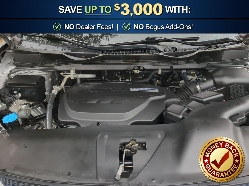3rd row seats: split-bench, 4-Wheel Disc Brakes, 4.33 Axle Ratio, 7 Speakers, A/V remote: CabinControl, ABS brakes, Air Conditioning, Alloy wheels, AM/FM radio: SiriusXM, Anti-whiplash front head restraints, Apple CarPlay/Android Auto, Auto High-beam Headlights, Auto-dimming Rear-View mirror, Automatic temperature control, Blind Spot Information (BSI) System warning, Brake assist, Bumpers: body-color, Delay-off headlights, Driver door bin, Driver vanity mirror, Driver's Seat Mounted Armrest, Dual front impact airbags, Dual front side impact airbags, Electronic Stability Control, Emergency communication system: HondaLink, Exterior Parking Camera Rear, Forward collision: Collision Mitigation Braking System (CMBS) + FCW mitigation, Four wheel independent suspension, Front anti-roll bar, Front Bucket Seats, Front dual zone A/C, Front fog lights, Front reading lights, Fully automatic headlights, Garage door transmitter: HomeLink, Heated door mirrors, Heated Front Bucket Seats, Heated front seats, Illuminated entry, Knee airbag, Lane departure: Lane Keeping Assist System (LKAS) active, Leather Seat Trim, Leather steering wheel, Low tire pressure warning, Memory seat, Occupant sensing airbag, Outside temperature display, Overhead airbag, Overhead console, Panic alarm, Passenger door bin, Passenger seat mounted armrest, Passenger vanity mirror, Power door mirrors, Power driver seat, Power Liftgate, Power moonroof, Power passenger seat, Power steering, Power windows, Radio data system, Radio: 160-Watt AM/FM/HD/SiriusXM Audio System, Rear air conditioning, Rear anti-roll bar, Rear reading lights, Rear seat center armrest, Rear window defroster, Rear window wiper, Reclining 3rd row seat, Remote keyless entry, Security system, Speed control, Speed-sensing steering, Speed-Sensitive Wipers, Split folding rear seat, Spoiler, Steering wheel mounted audio controls, Tachometer, Telescoping steering wheel, Tilt steering wheel, Traction control, Trip computer, Turn signal indicator mirrors, Variably intermittent wipers, Wheels: 18" Dark Silver-Painted Alloy.