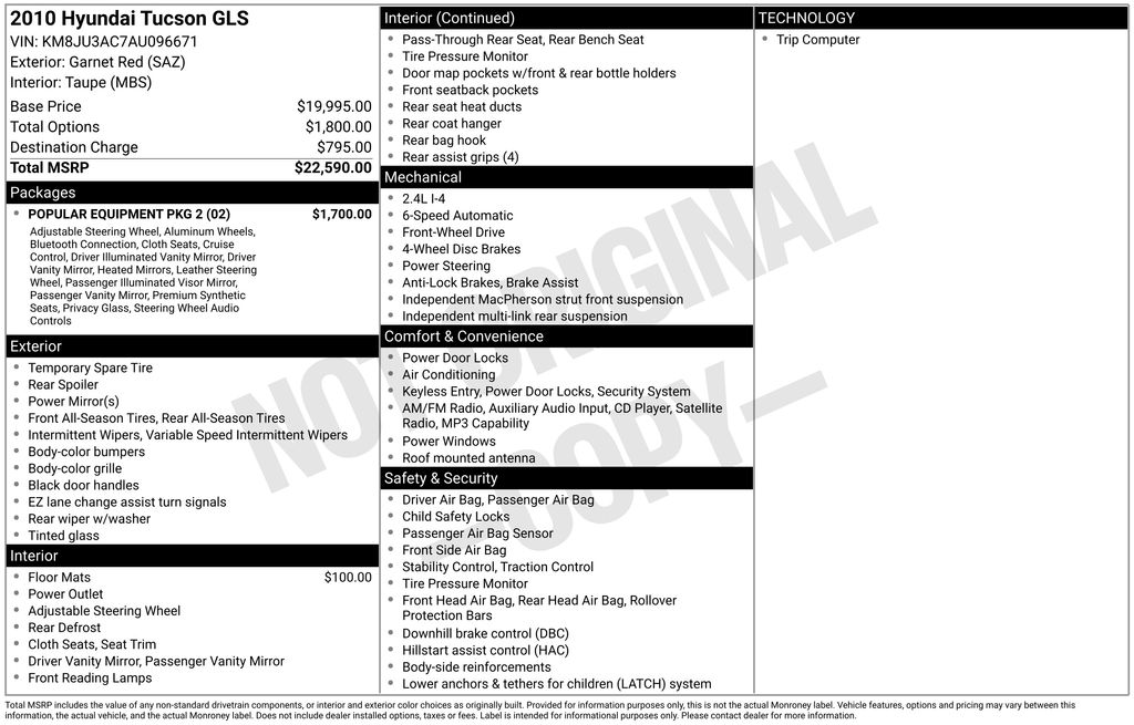 A wealth of standard features means that you no longer have to sacrifice! All of the premium features expected of a Hyundai are offered, including: 1-touch window functionality, air conditioning, and a split folding rear seat. It features a front-wheel-drive platform, an automatic transmission, and a 2.4 liter 4 cylinder engine.