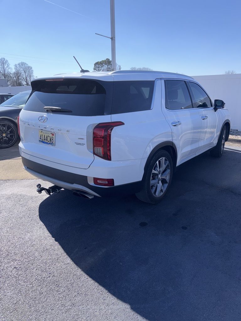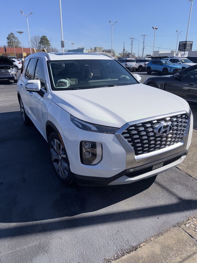 2020 Hyundai Palisade SEL Hyper White SEL AWD 8-Speed Automatic with SHIFTRONIC V6 115-Volt AC Power Outlet, 3.648 Axle Ratio, 3rd row seats: split-bench, 3rd Row USB Outlets, 4-Wheel Disc Brakes, 6 Speakers, 7" High Resolution Cluster Display, 8-Way Power Adjustable Passenger Seat, ABS brakes, Air Conditioning, Alloy wheels, AM/FM radio, Apple CarPlay & Android Auto, Artificial Leather-Wrapped Dashboard, Auto High-beam Headlights, Auto Leveling Rear Suspension, Auto-dimming Rear-View mirror, Automatic temperature control, Bi-LED Headlights, Brake assist, Bumpers: body-color, Cargo Cover/Screen, Cargo Net, Carpeted Floor Mats, Convenience Package P2, Delay-off headlights, Driver door bin, Driver vanity mirror, Dual front impact airbags, Dual front side impact airbags, Electronic Stability Control, Four wheel independent suspension, Front anti-roll bar, Front Bucket Seats, Front Center Armrest, Front dual zone A/C, Front reading lights, Fully automatic headlights, Garage door transmitter: HomeLink, Hands-Free Smart Liftgate w/Auto Open, Heated 2nd Row Seats, Heated door mirrors, Heated Front Bucket Seats, Heated front seats, Heated Steering Wheel, Illuminated entry, Integrated Memory System, Knee airbag, Leather Seat Trim, LED Taillights, Low tire pressure warning, Occupant sensing airbag, Outside temperature display, Overhead airbag, Overhead console, Panic alarm, Parking Distance Warning - Forward, Passenger door bin, Passenger vanity mirror, Power 3rd Row Seating, Power door mirrors, Power driver seat, Power steering, Power Sunroof P5, Power windows, Premium Package, Premium Package P3, Radio data system, Radio: AM/FM/MP3 Display Audio, Rear air conditioning, Rear anti-roll bar, Rear Side Window Sunshades, Rear window defroster, Rear window wiper, Reclining 3rd row seat, Remote keyless entry, Security system, Speed control, Speed-sensing steering, Split folding rear seat, Spoiler, Stain Resistant Cloth Seat Trim, Steering wheel mounted audio controls, Tachometer, Telescoping steering wheel, Tilt steering wheel, Traction control, Trip computer, Turn signal indicator mirrors, Ultrasonic Rear Seat Occupant Minder, Variably intermittent wipers, Wheel Locks, Wheels: 18" x 7.5J Machine Finish Alloy, Wheels: 20"x 7.5J Split 5-Spoke Machined Alloy, Wireless Phone Charger.