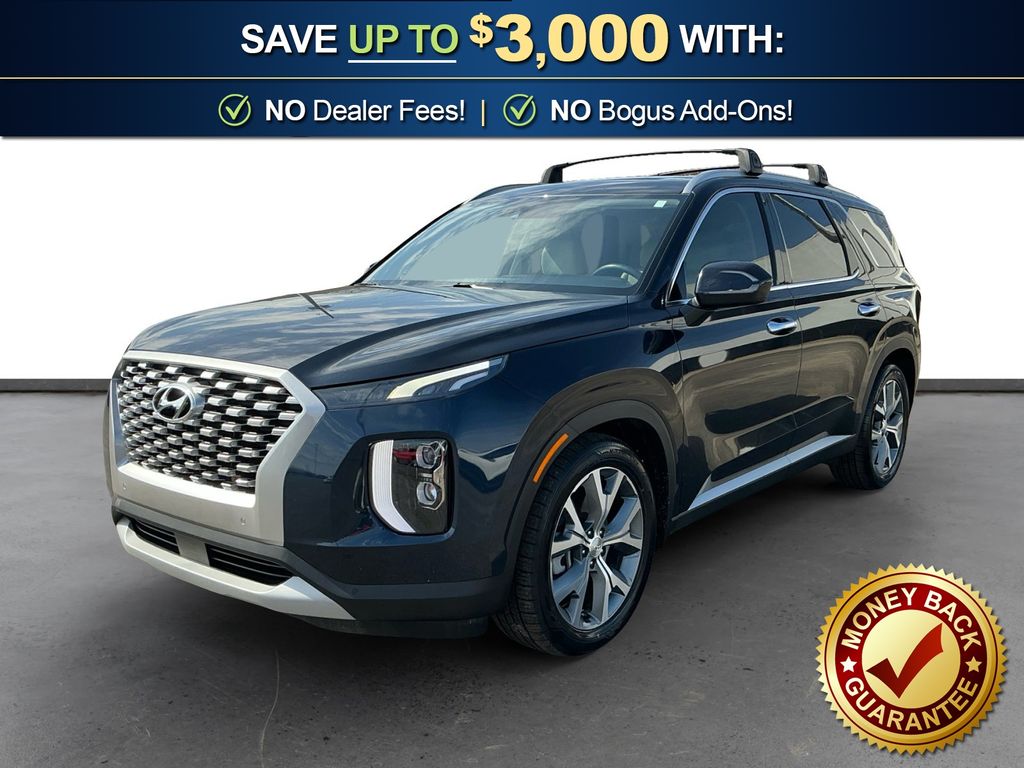 2021 Hyundai Palisade SEL Moonlight Cloud SEL FWD 8-Speed Automatic with SHIFTRONIC V6 115-Volt AC Power Outlet, 3.648 Axle Ratio, 3rd row seats: split-bench, 3rd Row USB Outlets, 4-Wheel Disc Brakes, 6 Speakers, 7" High-Resolution Cluster Display, 8-Passenger Bench Seating P4, 8-Way Power Passenger Seat, ABS brakes, Acoustic Front Side Glass, Air Conditioning, Alloy wheels, AM/FM radio, Apple CarPlay & Android Auto, Auto High-beam Headlights, Auto Leveling Rear Suspension, Auto-dimming Rear-View mirror, Automatic temperature control, Brake assist, Bumper Applique, Bumpers: body-color, Cargo Cover/Screen, Cargo Net, Carpeted Floor Mats, Cloth Seat Trim, Convenience Package P2, Delay-off headlights, Driver door bin, Driver vanity mirror, Driver's Seat Integrated Memory System, Dual front impact airbags, Dual front side impact airbags, Electronic Stability Control, Four wheel independent suspension, Front anti-roll bar, Front Bucket Seats, Front Center Armrest, Front dual zone A/C, Front Parking Sensors, Front reading lights, Fully automatic headlights, Garage door transmitter: HomeLink, Hands-Free Smart Liftgate, Heated 2nd Row Seats, Heated door mirrors, Heated Front Bucket Seats, Heated front seats, Heated Steering Wheel, Highway Drive Assist I, Illuminated entry, Knee airbag, Leather Seat Trim, LED Taillights, Low tire pressure warning, Mudguards, Occupant sensing airbag, Outside temperature display, Overhead airbag, Overhead console, Panic alarm, Passenger door bin, Passenger vanity mirror, Power 3rd Row Seating, Power door mirrors, Power driver seat, Power moonroof, Power steering, Power windows, Premium & 8P Bench Seat, Premium Dashboard & Door Armrests, Premium Package P3, Radio data system, Radio: AM/FM/MP3 Display Audio, Radio: AM/FM/MP3 Premium Audio System, Rear air conditioning, Rear anti-roll bar, Rear reading lights, Rear Side Window Sunshades, Rear window defroster, Rear window wiper, Reclining 3rd row seat, Remote keyless entry, Roof Rack Cross Rails, Security system, Speed control, Speed-sensing steering, Split folding rear seat, Spoiler, Steering wheel mounted audio controls, Tachometer, Telescoping steering wheel, Tilt steering wheel, Traction control, Trip computer, Turn signal indicator mirrors, Ultrasonic Rear Occupant Alert, Variably intermittent wipers, Wheel Locks, Wheels: 18" x 7.5J Machine Finish Alloy, Wheels: 20" x 7.5J Split 5-Spoke Machined Alloy, Wireless Phone Charger.