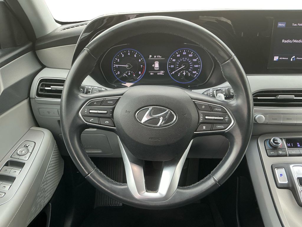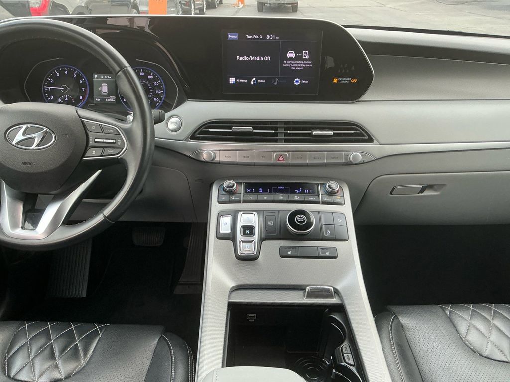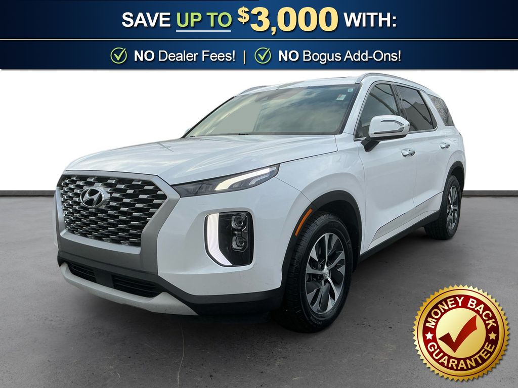 2021 Hyundai Palisade SEL Hyper White SEL FWD 8-Speed Automatic with SHIFTRONIC V6 3.648 Axle Ratio, 3rd row seats: split-bench, 4-Wheel Disc Brakes, 6 Speakers, ABS brakes, Air Conditioning, Alloy wheels, AM/FM radio, Apple CarPlay & Android Auto, Auto High-beam Headlights, Auto-dimming Rear-View mirror, Automatic temperature control, Brake assist, Bumper Applique, Bumpers: body-color, Cargo Block, Cargo Cover/Screen, Cargo Net, Cargo Package, Cargo Tray, Carpeted Floor Mats, Cloth Seat Trim, Delay-off headlights, Driver door bin, Driver vanity mirror, Dual front impact airbags, Dual front side impact airbags, Electronic Stability Control, First Aid Kit, Four wheel independent suspension, Front anti-roll bar, Front Bucket Seats, Front Center Armrest, Front dual zone A/C, Front reading lights, Fully automatic headlights, Garage door transmitter: HomeLink, Heated door mirrors, Heated Front Bucket Seats, Heated front seats, Illuminated entry, Knee airbag, Low tire pressure warning, Mudguards, Occupant sensing airbag, Option Group 01, Outside temperature display, Overhead airbag, Overhead console, Panic alarm, Passenger door bin, Passenger vanity mirror, Power door mirrors, Power driver seat, Power moonroof, Power steering, Power windows, Radio data system, Radio: AM/FM/MP3 Display Audio, Rear air conditioning, Rear anti-roll bar, Rear reading lights, Rear window defroster, Rear window wiper, Reclining 3rd row seat, Remote keyless entry, Security system, Speed control, Speed-sensing steering, Split folding rear seat, Spoiler, Steering wheel mounted audio controls, Tachometer, Telescoping steering wheel, Tilt steering wheel, Traction control, Trip computer, Turn signal indicator mirrors, Variably intermittent wipers, Wheels: 18" x 7.5J Machine Finish Alloy.