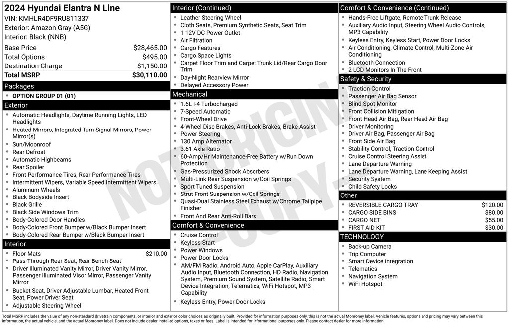 2024 Hyundai Elantra N Line **Here at Long-Lewis we believe in being transparent. We have no Doc fees, or any other hidden fees. We are a one price store and give our best price up front and they are clearly marked on all our inventory.** Amazon Gray FWD 7-Speed Dual Clutch DCT I4