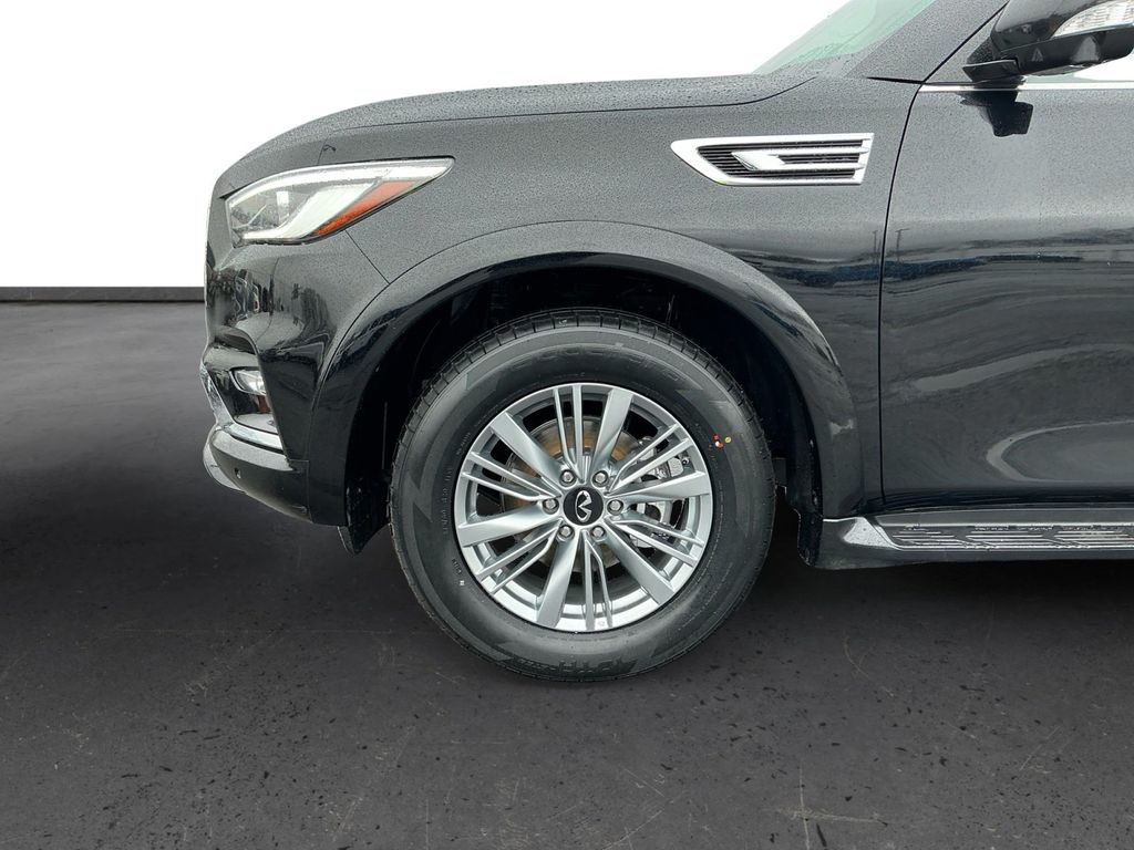 2021 INFINITI QX80 LUXE Black Obsidian LUXE RWD 7-Speed Automatic 5.6L V8 13 Speakers, 2.937 Axle Ratio, 3rd row seats: split-bench, 4-Wheel Disc Brakes, ABS brakes, Air Conditioning, Alloy wheels, AM/FM radio: SiriusXM, Anti-whiplash front head restraints, Apple CarPlay/Android Auto, Auto High-beam Headlights, Auto tilt-away steering wheel, Auto-dimming door mirrors, Auto-dimming Rear-View mirror, Auto-leveling suspension, Automatic temperature control, Brake assist, Bumpers: body-color, CD player, Compass, Delay-off headlights, Driver door bin, Driver vanity mirror, Dual front impact airbags, Dual front side impact airbags, DVD-Audio, Electronic Stability Control, Emergency communication system: INFINITI Connection, Four wheel independent suspension, Front anti-roll bar, Front Bucket Seats, Front Center Armrest, Front dual zone A/C, Front fog lights, Front reading lights, Fully automatic headlights, Garage door transmitter: HomeLink, Heated door mirrors, Heated Front Bucket Seats, Heated front seats, Heated steering wheel, Illuminated entry, Leather Shift Knob, Leather steering wheel, Leather-Appointed Seats, Literature Kit, Low tire pressure warning, Memory seat, Navigation system: INFINITI InTouch Navigation, Occupant sensing airbag, Outside temperature display, Overhead airbag, Overhead console, Panic alarm, Passenger door bin, Passenger vanity mirror, Power door mirrors, Power driver seat, Power Liftgate, Power moonroof, Power passenger seat, Power steering, Power windows, Radio data system, Radio: Bose Audio System w/13 Speakers, Rain sensing wipers, Rear air conditioning, Rear anti-roll bar, Rear audio controls, Rear reading lights, Rear seat center armrest, Rear window defroster, Rear window wiper, Reclining 3rd row seat, Remote keyless entry, Security system, Speed control, Speed-sensing steering, Split folding rear seat, Spoiler, Steering wheel memory, Steering wheel mounted audio controls, Tachometer, Telescoping steering wheel, Tilt steering wheel, Traction control, Trip computer, Turn signal indicator mirrors, Variably intermittent wipers, Voltmeter, Wheels: 20" x 8.0" Aluminum-Alloy.