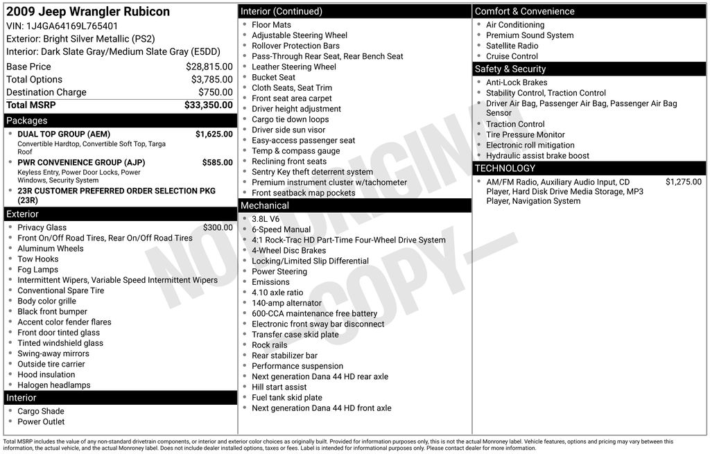 2009 Jeep Wrangler Rubicon **Here at Long-Lewis we believe in being transparent. We have no Doc fees, or any other hidden fees. We are a one price store and give our best price up front and they are clearly marked on all our inventory.** Bright Silver Metallic Clearcoat 4WD 6-Speed Manual 3.8L V6 SMPI 4WD.