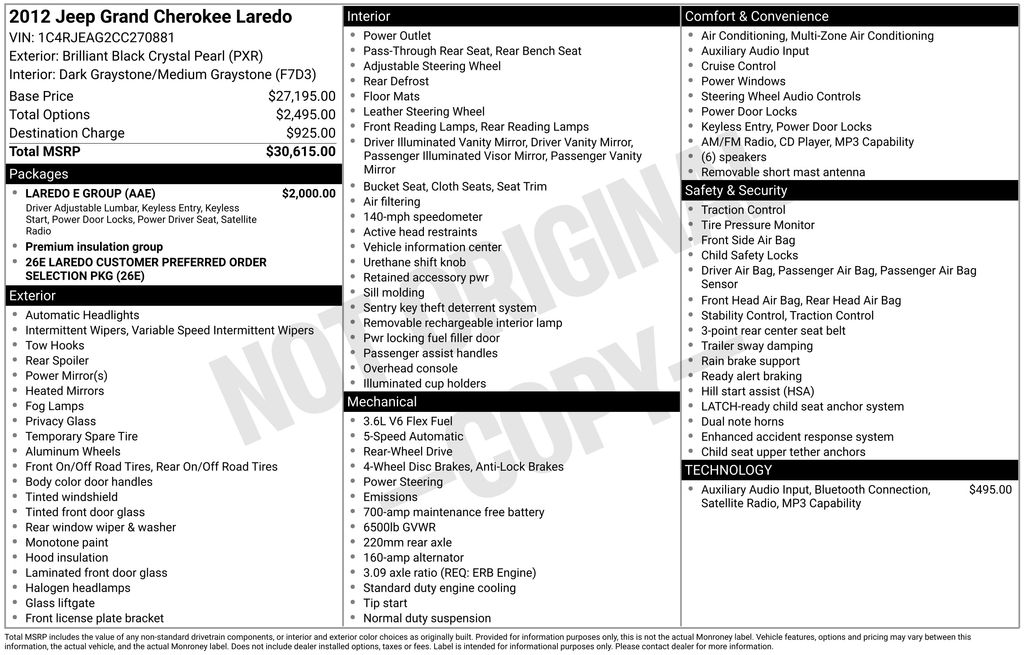 2012 Jeep Grand Cherokee Laredo **Here at Long-Lewis we believe in being transparent. We have no Doc fees, or any other hidden fees. We are a one price store and give our best price up front and they are clearly marked on all our inventory.** Brilliant Black Crystal Pearlcoat RWD 5-Speed Automatic 3.6L V6 Flex Fuel 24V VVT