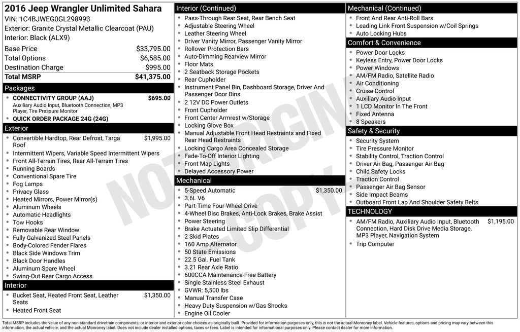 2016 Jeep Wrangler Unlimited Sahara **Here at Long-Lewis we believe in being transparent. We have no Doc fees, or any other hidden fees. We are a one price store and give our best price up front and they are clearly marked on all our inventory.** Granite Crystal Metallic Clearcoat 4WD 5-Speed Automatic 3.6L V6 24V VVT