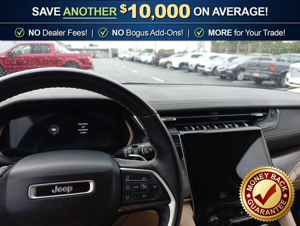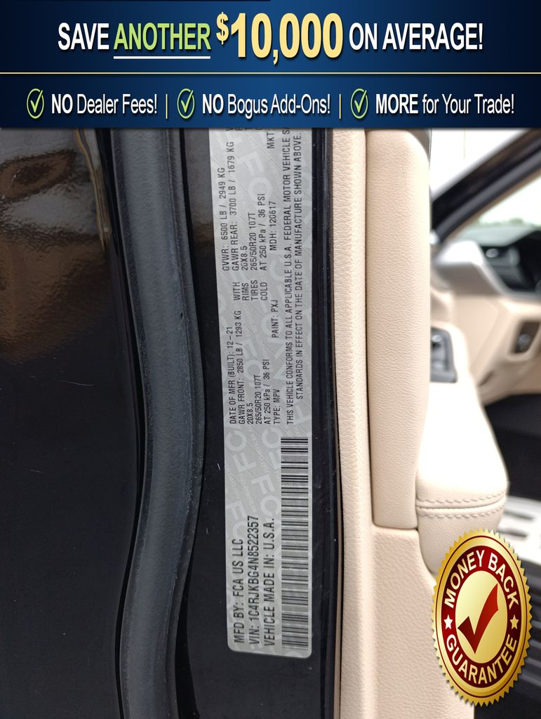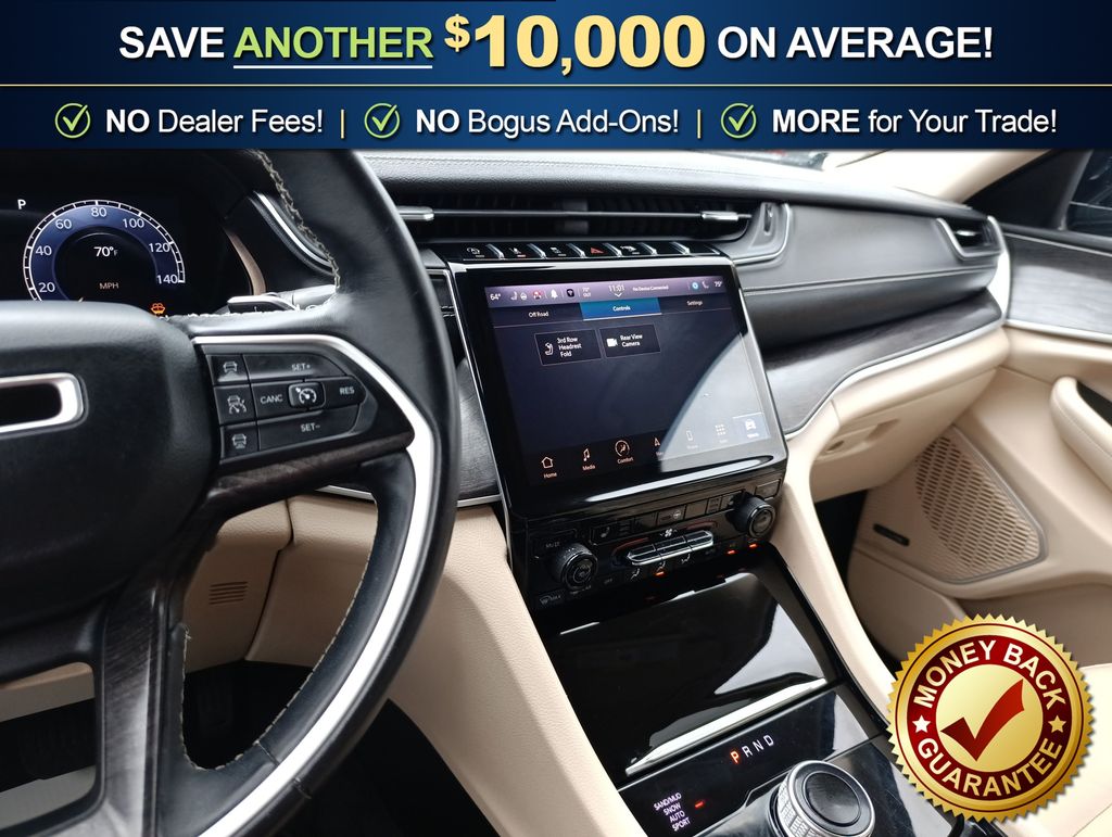 Recent Arrival! 10.1" Touchscreen Display, 3.45 Rear Axle Ratio, 3rd row seats: split-bench, 4-Wheel Disc Brakes, 4G LTE Wi-Fi Hot Spot, 506 Watt Amplifier, 6 Speakers, 9 Amplified Speakers w/Subwoofer, ABS brakes, Active Noise Control System, Air Conditioning, All Radio Equipped Vehicles, Alloy wheels, AM/FM radio: SiriusXM with 360L, Anti-whiplash front head restraints, Apple CarPlay, Audio memory, Auto High-beam Headlights, Automatic temperature control, Brake assist, Bumpers: body-color, Capri Leather Seats, Compass, Connected Travel & Traffic Services, Connectivity - US/Canada, Delay-off headlights, Disassociated Touchscreen Display, Driver door bin, Driver vanity mirror, Dual front impact airbags, Dual front side impact airbags, Electronic Stability Control, Emergency communication system, For Details, Visit DriveUconnect.com, For More Info, Call 800-643-2112, Four wheel independent suspension, Front anti-roll bar, Front Bucket Seats, Front Center Armrest w/Storage, Front dual zone A/C, Front fog lights, Front reading lights, Fully automatic headlights, Garage door transmitter, Global Telematics Box Module (TBM), Google Android Auto, GPS Antenna Input, GPS Navigation, HD Radio, Heated door mirrors, Heated front seats, Heated rear seats, Heated steering wheel, Illuminated entry, Integrated Center Stack Radio, Integrated Voice Command w/Bluetooth, Knee airbag, Leather steering wheel, Low tire pressure warning, Manual Fold Seatbacks, Memory seat, Normal Duty Suspension, Occupant sensing airbag, Outside temperature display, Overhead airbag, Overhead console, Panic alarm, ParkView Rear Back-Up Camera, Passenger door bin, Passenger vanity mirror, Power door mirrors, Power driver seat, Power Liftgate, Power passenger seat, Power steering, Power windows, Quick Order Package 22E, Radio data system, Radio: Uconnect 5 Nav w/10.1" Display, Radio: Uconnect 5 w/8.4" Display, Rear air conditioning, Rear anti-roll bar, Rear reading lights, Rear window defroster, Rear window wiper, Reclining 3rd row seat, Remote keyless entry, Security system, SiriusXM Radio Service, SiriusXM Satellite Radio, SiriusXM w/360L, Speed control, Speed-Sensitive Wipers, Split folding rear seat, Spoiler, Steering wheel mounted audio controls, Tachometer, Telescoping steering wheel, Tilt steering wheel, Traction control, Trip computer, Turn signal indicator mirrors, USB Host Flip, Variably intermittent wipers, Voltmeter, Wheels: 18" x 8.0" Fully Painted Aluminum 2, Wheels: 20" x 8.5" Polished/Painted Aluminum.