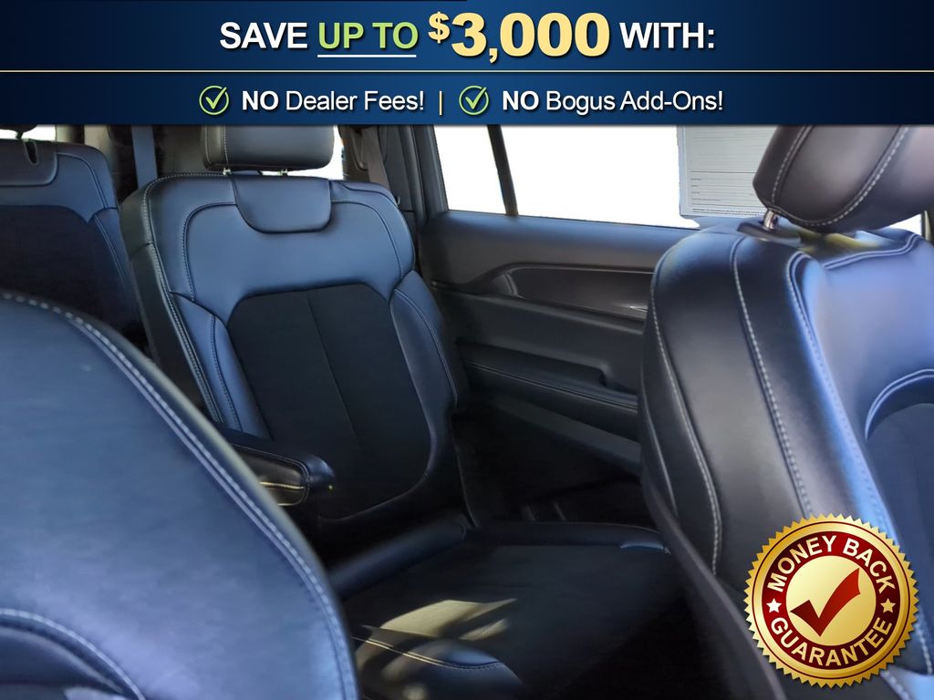 Priced below KBB Fair Purchase Price! 115V Auxiliary Power Outlet, 3.45 Rear Axle Ratio, 3rd Row Charge-Only USB Ports, 3rd row seats: split-bench, 4-Wheel Disc Brakes, 6 Speakers, ABS brakes, Air Conditioning, Alloy wheels, Altitude Appearance Package, AM/FM radio, Anti-whiplash front head restraints, Automatic temperature control, Black Headliner, Brake assist, Bumpers: body-color, Cloth Seats, Compass, Delay-off headlights, Delete Laredo Badge, Driver door bin, Driver vanity mirror, Dual front impact airbags, Dual front side impact airbags, Electronic Stability Control, Emergency communication system, Four wheel independent suspension, Front anti-roll bar, Front Bucket Seats, Front Center Armrest w/Storage, Front dual zone A/C, Front reading lights, Fully automatic headlights, Gloss Black Exterior Accents, Heated door mirrors, Heated Front Seats, Heated Steering Wheel, Illuminated entry, Knee airbag, Leather Trimmed Bucket Seats, Leather Wrapped Steering Wheel, Low tire pressure warning, Manual Fold Seatbacks, Molded In Color Black/Gloss Black Roof Rails, Normal Duty Suspension, Occupant sensing airbag, Outside temperature display, Overhead airbag, Overhead console, Panic alarm, ParkView Rear Back-Up Camera, Passenger door bin, Passenger vanity mirror, Power door mirrors, Power driver seat, Power Liftgate, Power steering, Power Sunroof, Power windows, Quick Order Package 22B Altitude, Radio data system, Radio: Uconnect 5 w/8.4" Display, Rain Sensitive Windshield Wipers, Rear air conditioning, Rear anti-roll bar, Rear reading lights, Rear window defroster, Rear window wiper, Reclining 3rd row seat, Remote keyless entry, Remote Start System, Security system, Selectable Tire Fill Alert, Speed control, Speed-Sensitive Wipers, Split folding rear seat, Spoiler, Steering wheel mounted audio controls, Tachometer, Telescoping steering wheel, Tilt steering wheel, Traction control, Trip computer, Variably intermittent wipers, Voltmeter, Wheels: 18" x 8.0" Fully Painted Aluminum, Wheels: 20" x 8.5" Gloss Black Painted Aluminum, Wireless Charging Pad.