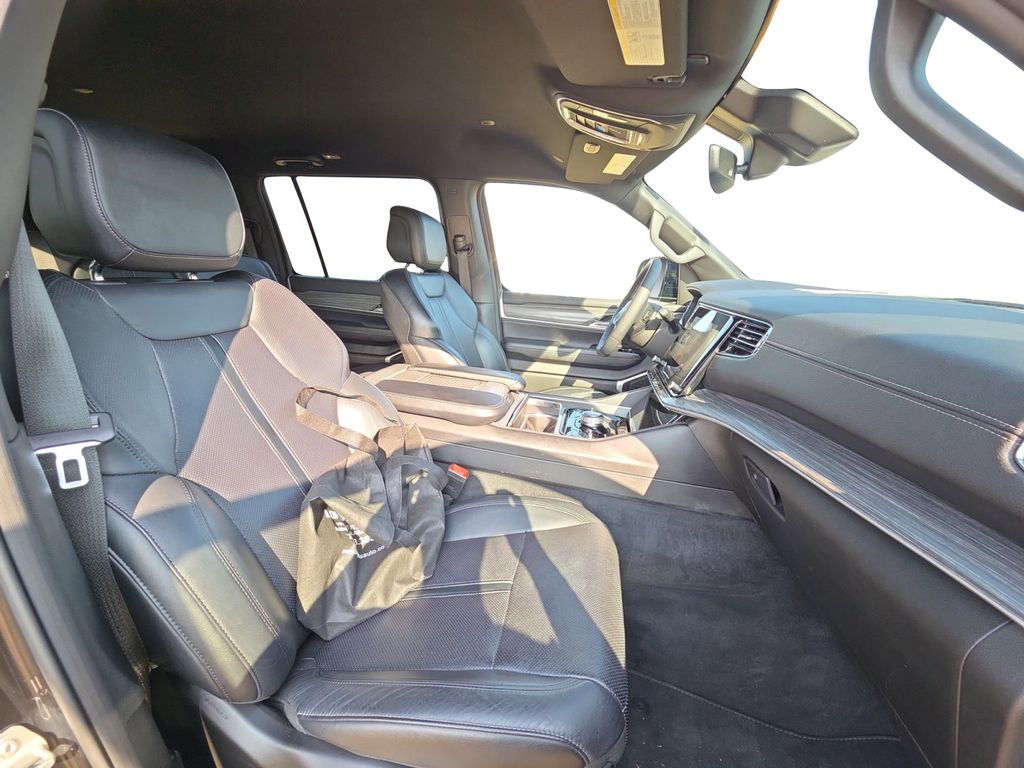 Priced below KBB Fair Purchase Price! 10 Speakers, 3.55 Rear Axle Ratio, 3rd row seats: bench, 4-Wheel Disc Brakes, 8-Passenger Seating, ABS brakes, Adjustable pedals, Air Conditioning, Alloy wheels, AM/FM radio: SiriusXM with 360L, Anti-whiplash front head restraints, Apple CarPlay/Android Auto, Audio memory, Auto High-beam Headlights, Auto-dimming door mirrors, Auto-dimming Rear-View mirror, Auto-leveling suspension, Automatic temperature control, Brake assist, Bumpers: body-color, Compass, Delay-off headlights, Driver door bin, Driver vanity mirror, Driver's Seat Mounted Armrest, Dual front impact airbags, Dual front side impact airbags, Electronic Stability Control, Emergency communication system: Wagoneer Connect, Exterior Parking Camera Rear, Four wheel independent suspension, Front anti-roll bar, Front Bucket Seats, Front Center Armrest w/Storage, Front dual zone A/C, Front fog lights, Front reading lights, Full Length Floor Console, Fully automatic headlights, Garage door transmitter, Genuine wood console insert, Genuine wood dashboard insert, Genuine wood door panel insert, Heads-Up Display, Heated door mirrors, Heated front seats, Heated rear seats, Heated steering wheel, Illuminated entry, Knee airbag, Leather Trimmed Bucket Seats, Low tire pressure warning, Memory seat, Navigation System, Normal Duty Suspension, Occupant sensing airbag, Outside temperature display, Overhead airbag, Overhead console, Panic alarm, Passenger door bin, Passenger seat mounted armrest, Passenger vanity mirror, Pedal memory, Power adjustable front head restraints, Power door mirrors, Power driver seat, Power Liftgate, Power passenger seat, Power steering, Power windows, Preferred Equipment Group (DISC), Quadra-Lift Air Suspension, Quick Order Package 25N, Radio data system, Radio: Uconnect 5 Nav w/10.1" Display, Rain sensing wipers, Rear air conditioning, Rear anti-roll bar, Rear reading lights, Rear seat center armrest, Rear window defroster, Rear window wiper, Reclining 3rd row seat, Remote keyless entry, Security system, Semi Active Damping, Speed control, Speed-sensing steering, Speed-Sensitive Wipers, Split folding rear seat, Steering wheel memory, Steering wheel mounted audio controls, Tachometer, Telescoping steering wheel, Tilt steering wheel, Traction control, Trip computer, Turn signal indicator mirrors, Variably intermittent wipers, Ventilated front seats, Voltmeter, Wheels: 20" x 9.0" Aluminum (DISC).