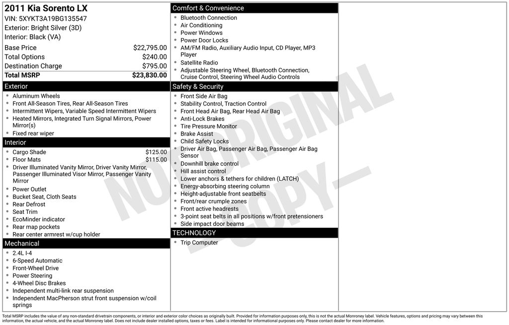 2011 Kia Sorento LX SUV I4 DOHC Dual CVVT