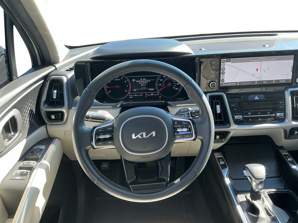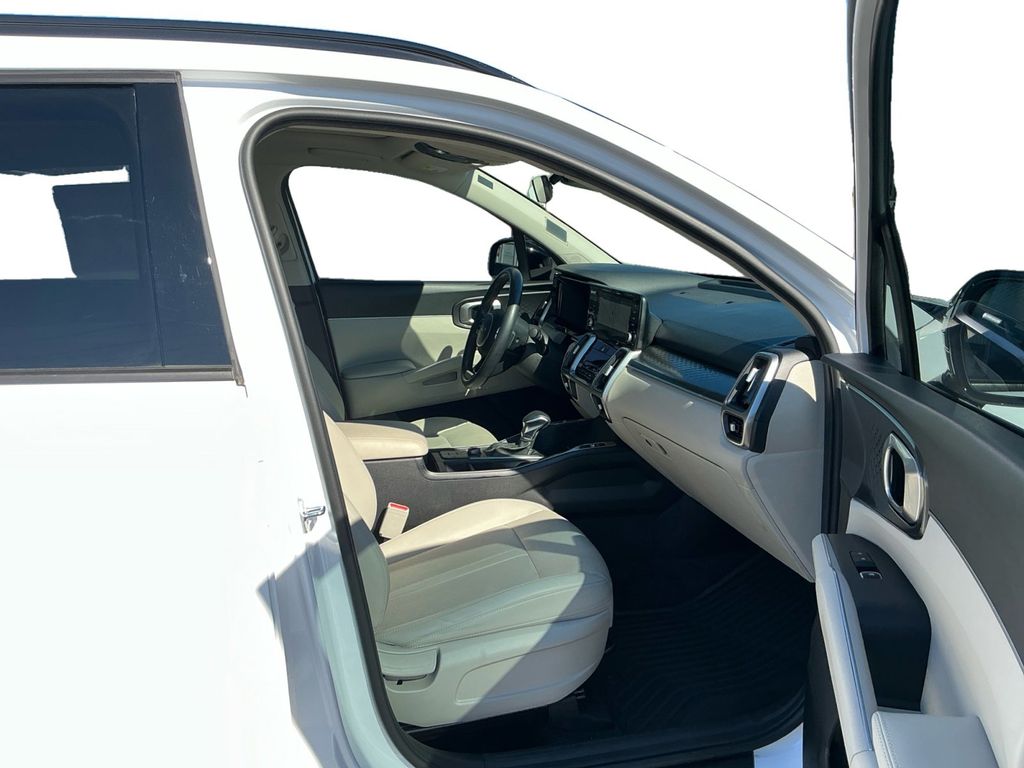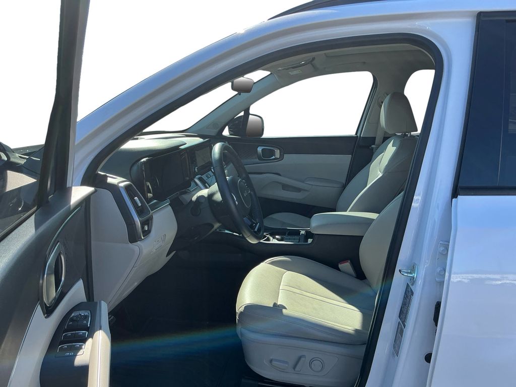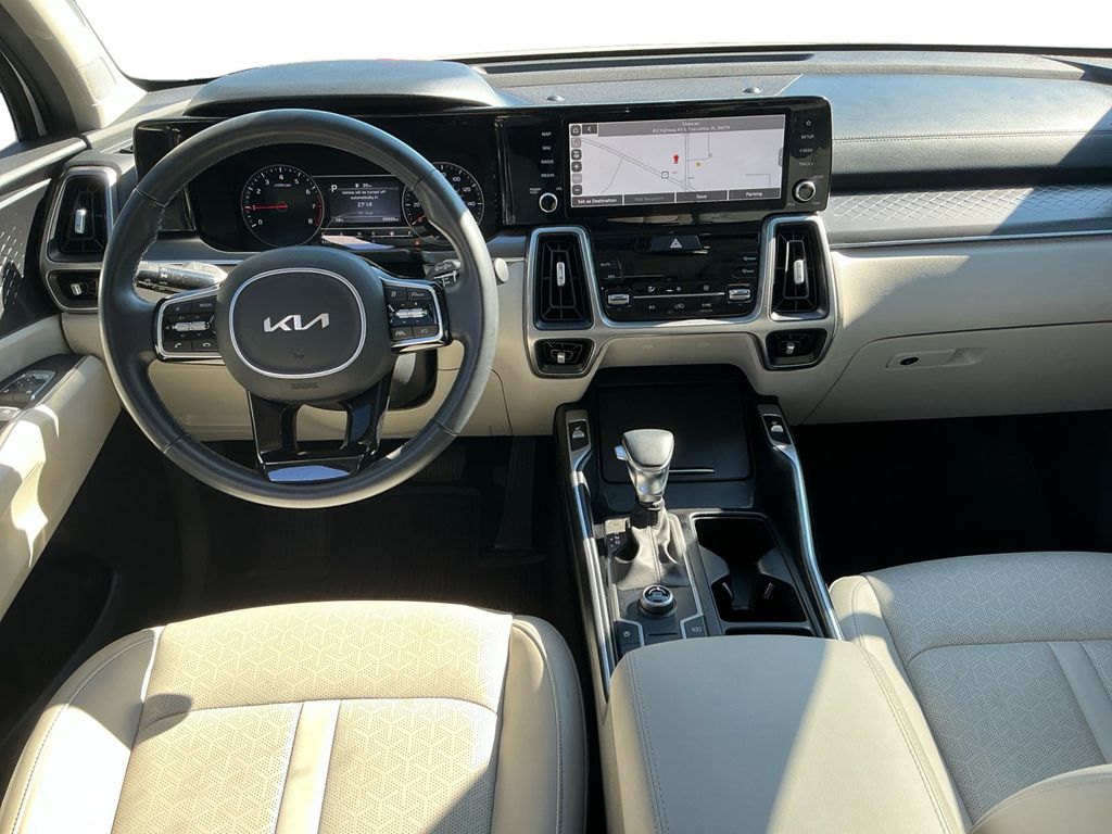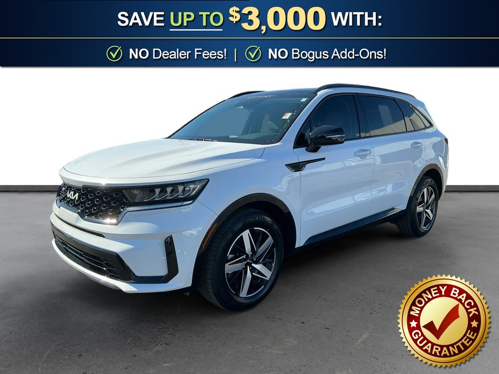 2023 Kia Sorento S Glacial White Pearl S FWD 8-Speed Automatic 2.5L I4 DGI DOHC 16V LEV3-ULEV70 191hp 3.798 Axle Ratio, 3rd row seats: split-bench, 4-Wheel Disc Brakes, 6 Speakers, ABS brakes, Air Conditioning, Alloy wheels, AM/FM radio: SiriusXM, Apple CarPlay & Android Auto, Auto High-beam Headlights, Automatic temperature control, Brake assist, Bumpers: body-color, Delay-off headlights, Driver door bin, Driver vanity mirror, Dual front impact airbags, Dual front side impact airbags, Electronic Stability Control, Emergency communication system, Exterior Parking Camera Rear, Four wheel independent suspension, Front anti-roll bar, Front Bucket Seats, Front Center Armrest, Front dual zone A/C, Front reading lights, Fully automatic headlights, Heated door mirrors, Heated Front Bucket Seats, Heated front seats, Illuminated entry, Knee airbag, Leather Shift Knob, Leather steering wheel, LED Interior Lighting, Low tire pressure warning, Navigation System, Occupant sensing airbag, Outside temperature display, Overhead airbag, Overhead console, Panic alarm, Panoramic Power Sunroof w/Power Sunshade, Panoramic Sunroof Package, Passenger door bin, Passenger vanity mirror, Power door mirrors, Power driver seat, Power steering, Power windows, Radio data system, Radio: AM/FM Audio System, Rear air conditioning, Rear anti-roll bar, Rear reading lights, Rear seat center armrest, Rear window defroster, Rear window wiper, Remote keyless entry, Roof rack: rails only, Security system, Smart Key w/ Push Button and Remote Start, Speed control, Speed-sensing steering, Split folding rear seat, Spoiler, Steering wheel mounted audio controls, SynTex Artificial Leather Seat Trim, Tachometer, Telescoping steering wheel, Tilt steering wheel, Traction control, Trip computer, Turn signal indicator mirrors, Variably intermittent wipers, Wheels: 7.5J x 18" Machine-Finished Alloy.