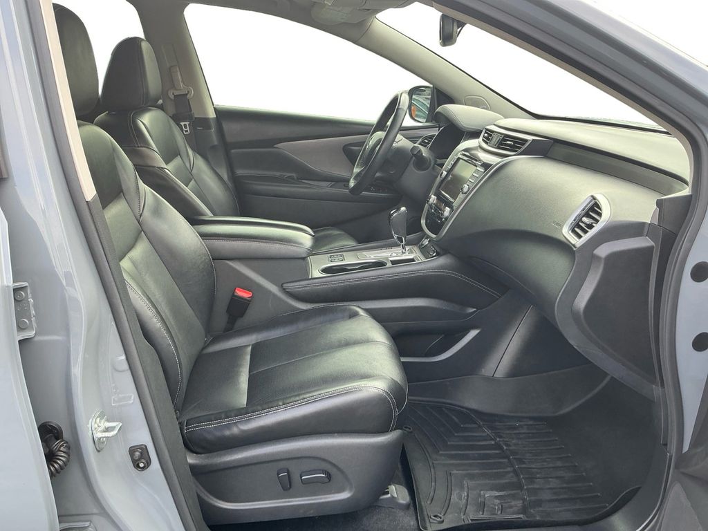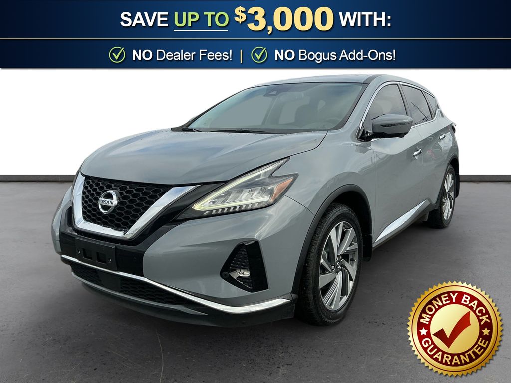 2021 Nissan Murano SL Boulder Gray Pearl SL FWD CVT with Xtronic 3.5L V6 DOHC 24V CVT with Xtronic, 11 Speakers, 4-Wheel Disc Brakes, 4.667 Axle Ratio, ABS brakes, Air Conditioning, Alloy wheels, AM/FM radio: SiriusXM, AM/FM/CD/MP3/WMA Audio System, Auto High-beam Headlights, Auto-dimming Rear-View mirror, Automatic temperature control, Blind Spot Warning, Brake assist, Bumpers: body-color, Carpeted Floor Mats & Carpeted Cargo Mat, CD player, Child-Seat-Sensing Airbag, Delay-off headlights, Driver door bin, Driver vanity mirror, Dual front impact airbags, Dual front side impact airbags, Dual Panel Panoramic Moonroof, Electronic Stability Control, Exterior Parking Camera Rear, Four wheel independent suspension, Front anti-roll bar, Front Bucket Seats, Front Center Armrest, Front dual zone A/C, Front fog lights, Front reading lights, Fully automatic headlights, Garage door transmitter: HomeLink, Heated door mirrors, Heated Front Bucket Seats, Heated front seats, Heated rear seats, Heated steering wheel, Illuminated entry, Illuminated Kick Plates, Illuminated Kick Plates (PIO), Knee airbag, Leather-Appointed Seat Trim, Low tire pressure warning, Memory seat, Navigation system: NissanConnect Navigation, NissanConnect featuring Apple CarPlay and Android Auto, Occupant sensing airbag, Outside temperature display, Overhead airbag, Overhead console, Panic alarm, Passenger door bin, Passenger vanity mirror, Power door mirrors, Power driver seat, Power Liftgate, Power passenger seat, Power steering, Power windows, Radio data system, Rear anti-roll bar, Rear Bumper Protector, Rear reading lights, Rear seat center armrest, Rear side impact airbag, Rear window defroster, Rear window wiper, Remote keyless entry, Roof rack: rails only, Security system, SL Moonroof Package, Speed control, Speed-sensing steering, Speed-Sensitive Wipers, Splash Guards, Split folding rear seat, Spoiler, Steering wheel mounted audio controls, Tachometer, Telescoping steering wheel, Tilt steering wheel, Traction control, Trip computer, Turn signal indicator mirrors, Variably intermittent wipers, Wheels: 20" Machined Aluminum-Alloy, CVT with Xtronic.