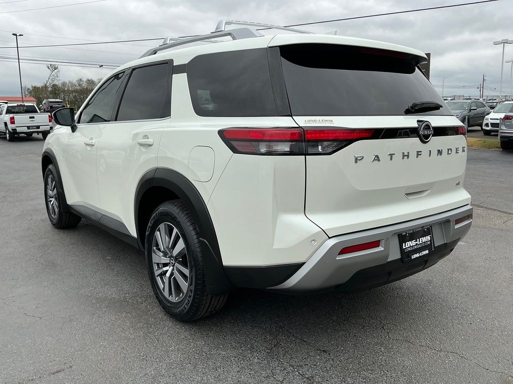 2022 Nissan Pathfinder SL Pearl White Tricoat SL FWD 9-Speed Automatic V6 18" Machined Alloy Wheels, 3rd row seats: bench, 4-Wheel Disc Brakes, 6 Speakers, ABS brakes, Air Conditioning, Alloy wheels, AM/FM radio: SiriusXM, Auto High-beam Headlights, Auto-dimming Rear-View mirror, Automatic temperature control, Axle Ratio: TBD, Bench Seat Carpeted Floor Mats (Set of 4), Black Splash Guards (Set of 4), Brake assist, Bumpers: body-color, Cross Bars, Delay-off headlights, Driver door bin, Driver vanity mirror, Dual front impact airbags, Dual front side impact airbags, Electronic Stability Control, Emergency communication system: NissanConnect Services, Exterior Parking Camera Rear, Four wheel independent suspension, Front anti-roll bar, Front Bucket Seats, Front Center Armrest, Front dual zone A/C, Front fog lights, Front reading lights, Fully automatic headlights, Garage door transmitter: HomeLink, Heated door mirrors, Heated Front Bucket Seats, Heated front seats, Heated steering wheel, Illuminated entry, Knee airbag, Leather Seating Surfaces, Leather steering wheel, Low tire pressure warning, Navigation system: NissanConnect Navigation, NissanConnect w/Navigation & Services, Occupant sensing airbag, Outside temperature display, Overhead airbag, Overhead console, Panic alarm, Passenger door bin, Passenger vanity mirror, Power door mirrors, Power driver seat, Power Liftgate, Power passenger seat, Power steering, Power windows, Radio data system, Radio: AM/FM Audio System, Rear air conditioning, Rear anti-roll bar, Rear reading lights, Rear seat center armrest, Rear side impact airbag, Rear window defroster, Rear window wiper, Reclining 3rd row seat, Remote keyless entry, Security system, Speed control, Speed-sensing steering, Split folding rear seat, Spoiler, Steering wheel mounted audio controls, Tachometer, Telescoping steering wheel, Tilt steering wheel, Traction control, Trip computer, Turn signal indicator mirrors, Variably intermittent wipers.
