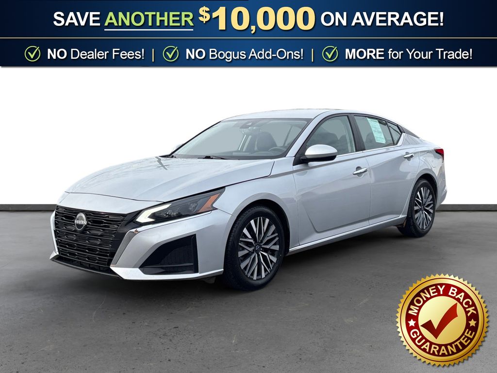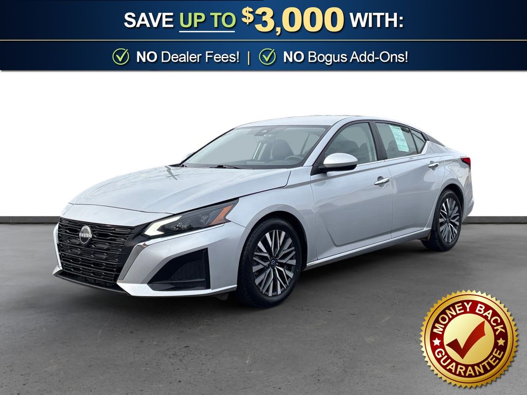 2023 Nissan Altima 2.5 SV Brilliant Silver Metallic 2.5 SV FWD CVT with Xtronic 2.5L 4-Cylinder DOHC 16V CVT with Xtronic, 17" Machined Alloy Wheels, 4-Wheel Disc Brakes, 6 Speakers, ABS brakes, Air Conditioning, Alloy wheels, AM/FM radio: SiriusXM, Auto High-beam Headlights, Blind Spot Warning, Brake assist, Bumpers: body-color, Cloth Seat Trim, Delay-off headlights, Driver door bin, Driver vanity mirror, Dual front impact airbags, Dual front side impact airbags, Electronic Stability Control, Floor Mats/Trunk Mat/Hideaway Net, Four wheel independent suspension, Front anti-roll bar, Front Bucket Seats, Front Center Armrest, Front reading lights, Fully automatic headlights, Illuminated entry, Knee airbag, Low tire pressure warning, NissanConnect featuring Apple CarPlay and Android Auto, Occupant sensing airbag, Outside temperature display, Overhead airbag, Overhead console, Panic alarm, Passenger door bin, Passenger vanity mirror, Power door mirrors, Power driver seat, Power steering, Power windows, Radio data system, Radio: AM/FM Audio System, Rear anti-roll bar, Rear Parking Sensors, Rear reading lights, Rear seat center armrest, Rear side impact airbag, Rear window defroster, Remote keyless entry, Security system, Speed control, Speed-sensing steering, Speed-Sensitive Wipers, Split folding rear seat, Steering wheel mounted audio controls, Tachometer, Telescoping steering wheel, Tilt steering wheel, Traction control, Trip computer, Variably intermittent wipers, CVT with Xtronic.