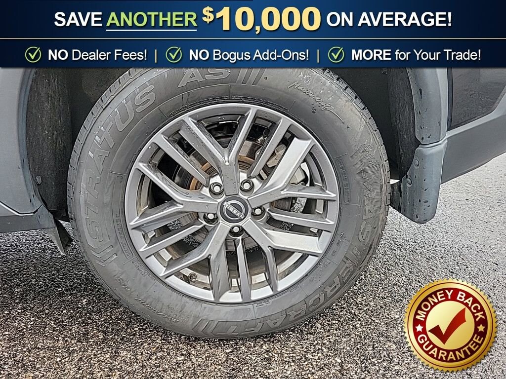 Priced below KBB Fair Purchase Price! AWD, 17 Aluminum Alloy Wheels, 4 Speakers, 4-Wheel Disc Brakes, 5.604 Axle Ratio, ABS brakes, Air Conditioning, Alloy wheels, AM/FM Radio, AM/FM radio: SiriusXM, Auto High-beam Headlights, Black Splash Guards (Set of 4), Blind Spot Warning, Brake assist, Bumpers: body-color, Cloth Seat Trim, Delay-off headlights, Driver door bin, Driver vanity mirror, Dual front impact airbags, Dual front side impact airbags, Electronic Stability Control, First Aid Kit, Floor Mats w/1-Piece Cargo Area Protector, Four wheel independent suspension, Front anti-roll bar, Front Bucket Seats, Front Center Armrest, Front reading lights, Fully automatic headlights, Illuminated entry, Knee airbag, Low tire pressure warning, NissanConnect featuring Apple CarPlay and Android Auto, Occupant sensing airbag, Outside temperature display, Overhead airbag, Overhead console, Panic alarm, Passenger door bin, Passenger vanity mirror, Power door mirrors, Power steering, Power windows, Radio data system, Rear anti-roll bar, Rear Parking Sensors, Rear seat center armrest, Rear side impact airbag, Rear window defroster, Rear window wiper, Remote keyless entry, Speed control, Speed-Sensitive Wipers, Split folding rear seat, Spoiler, Steering wheel mounted audio controls, Tachometer, Telescoping steering wheel, Tilt steering wheel, Traction control, Trip computer, Variably intermittent wipers, AWD.