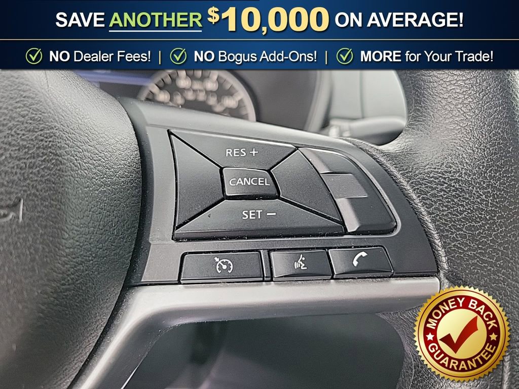 Priced below KBB Fair Purchase Price! CVT with Xtronic, 17 Alloy Wheels, 4-Wheel Disc Brakes, 6 Speakers, ABS brakes, Air Conditioning, Alloy wheels, AM/FM radio: SiriusXM, Auto High-beam Headlights, Blind Spot Warning, Brake assist, Bumpers: body-color, Cloth Seat Trim, Delay-off headlights, Driver door bin, Driver vanity mirror, Dual front impact airbags, Dual front side impact airbags, Electronic Stability Control, Floor Mats/Trunk Mat/Hideaway Net, Four wheel independent suspension, Front anti-roll bar, Front Bucket Seats, Front Center Armrest, Front reading lights, Fully automatic headlights, Illuminated entry, Knee airbag, Low tire pressure warning, NissanConnect featuring Apple CarPlay, Occupant sensing airbag, Outside temperature display, Overhead airbag, Overhead console, Panic alarm, Passenger door bin, Passenger vanity mirror, Power door mirrors, Power driver seat, Power steering, Power windows, Radio data system, Radio: AM/FM Audio System, Rear anti-roll bar, Rear Parking Sensors, Rear reading lights, Rear seat center armrest, Rear side impact airbag, Rear window defroster, Remote keyless entry, Security system, Speed control, Speed-sensing steering, Speed-Sensitive Wipers, Split folding rear seat, Steering wheel mounted audio controls, Tachometer, Telescoping steering wheel, Tilt steering wheel, Traction control, Trip computer, Variably intermittent wipers, CVT with Xtronic.
