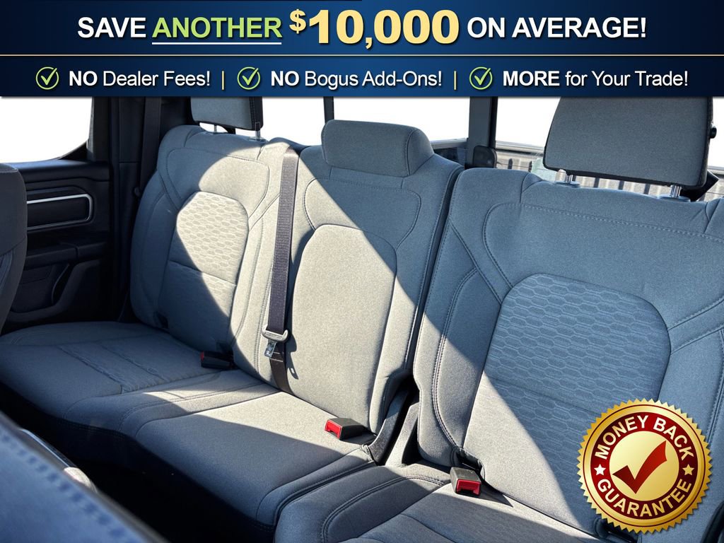 Priced below KBB Fair Purchase Price! 115V Auxiliary Power Outlet, 12 Touchscreen Display, 26 Gallon Fuel Tank, 3 Rear Seat Head Restraints, 4 Way Front Headrests, 4-Wheel Disc Brakes, 400W Inverter, 4G LTE Wi-Fi Hot Spot, 6 Speakers, 9 Amplified Speakers w/Subwoofer, ABS brakes, Air Conditioning, Air Conditioning ATC w/Dual Zone Control, Alloy wheels, AM/FM radio, Apple CarPlay, Apple CarPlay/Android Auto, Auto High-beam Headlights, Auto Power-Folding Mirrors, Auto-Dimming Exterior Driver Mirror, Auto-Dimming Rear-View Mirror, Bed Utility Group, Big Horn Level 2 Equipment Group, Black Exterior Mirrors, Black Premium Power Mirrors, Brake assist, Bumpers: chrome, Chrome RAM Grille Badge, Cloth Bench Seat, Cluster 12 TFT Color Display, Cluster 7 TFT Color Display, Compass, Configurable Drive Mode, Connected Travel & Traffic Services, Connectivity - US/Canada, Convex Wide-Angle Exterior Mirror Insert, Delay-off headlights, Driver door bin, Dual front impact airbags, Dual front side impact airbags, Electronic Stability Control, Exterior 115V AC Outlet, Exterior Mirrors Courtesy Lamps, Exterior Mirrors w/Heating Element, Exterior Mirrors w/Supplemental Signals, Front anti-roll bar, Front Center Armrest w/Storage, Front fog lights, Front reading lights, Front Seat Back Map Pockets, Front wheel independent suspension, Fully automatic headlights, Glove Box Lamp, Google Android Auto, GPS Antenna Input, GPS Navigation, HD Radio, Heated door mirrors, Heated Front Seats, Heated Steering Wheel, Illuminated entry, Integrated Voice Command w/Bluetooth, Leather Wrapped Steering Wheel, LED Dome Lamp w/On/Off Switch, LED Footwell Lighting, Low tire pressure warning, Manual Adjust 4-Way Front Passenger Seat, Manual Folding Exterior Mirrors, Manufacturer's Statement of Origin, MOPAR 4 Adjustable Cargo Tie-Down Hooks, MOPAR Spray In Bedliner, Occupant sensing airbag, Outside temperature display, Overhead airbag, Overhead console, Overhead LED Lamps, Panic alarm, ParkView Rear Back-Up Camera, Passenger door bin, Passenger vanity mirror, Pick-Up Box Lighting, Power 2-Way Driver Lumbar Adjust, Power Adjust 8-Way Driver Seat, Power Adjustable Pedals, Power door mirrors, Power steering, Power windows, Premium Overhead Console, Quick Order Package 21Z Big Horn, Radio data system, Radio: Uconnect 5 Nav w/12 Display, Radio: Uconnect 5 w/8.4 Display, Rear 60/40 Folding Seat, Rear anti-roll bar, Rear Power Sliding Window, Rear seat center armrest, Rear step bumper, Rear Window Defroster, Remote keyless entry, Remote Tailgate Release, Security Alarm, SiriusXM w/360L, Speed control, Split folding rear seat, Steering Wheel Mounted Audio Controls, Sun Visors w/Illuminated Vanity Mirrors, Supplier Part Tracking (J-1), Tachometer, Telescoping steering wheel, Tilt steering wheel, Traction control, Trip computer, Universal Garage Door Opener, USB Host Flip, Variably intermittent wipers, Voltmeter, Wheels: 18 x 8 Cast-Aluminum Painted.