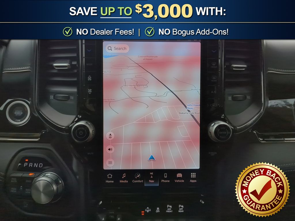 19 Speakers, 3.92 Rear Axle Ratio, 4-Wheel Disc Brakes, 4G LTE Wi-Fi Hot Spot, ABS brakes, Active Noise Control System, Adjustable pedals, Air Conditioning, Alloy wheels, AM/FM radio, Apple CarPlay, Apple CarPlay/Android Auto, Audio memory, Auto High-beam Headlights, Auto Power-Folding Mirrors, Auto-dimming door mirrors, Auto-Dimming Exterior Driver Mirror, Auto-dimming Rear-View mirror, Auto-leveling suspension, Automatic temperature control, Body Color Bumper Group, Body Color Front Bumper, Body Color Rear Bumper with Step Pads, Bodyside moldings, Brake assist, Bumpers: chrome, Chrome Exterior Mirrors, Compass, Connected Travel and Traffic Services, Connectivity - US/Canada, Convex Wide-Angle Exterior Mirror Insert, Delay-off headlights, Disassociated Touchscreen Display, Dome Dual LED Reading Lamp, Driver door bin, Driver vanity mirror, Dual front impact airbags, Dual front side impact airbags, Dual-Pane Panoramic Sunroof, Electronic Stability Control, Exterior Mirrors Courtesy Lamps, Exterior Mirrors with Heating Element, Exterior Mirrors with Memory, Exterior Mirrors with Supplemental Signals, Exterior Parking Camera Rear, Front anti-roll bar, Front Bucket Seats, Front Center Armrest w/Storage, Front dual zone A/C, Front fog lights, Front reading lights, Front wheel independent suspension, Fully automatic headlights, Garage door transmitter, Genuine wood console insert, Genuine wood dashboard insert, Genuine wood door panel insert, Global Telematics Box Module, Google Android Auto, GPS Antenna Input, GPS Navigation, HD Radio, Heated door mirrors, Heated front seats, Heated rear seats, Heated steering wheel, Illuminated entry, Integrated Center Stack Radio, Integrated Voice Command with Bluetooth, Leather steering wheel, LED Dome/Reading Lamp, Low tire pressure warning, Memory seat, Navigation System, Occupant sensing airbag, Outside temperature display, Overhead airbag, Overhead console, Panic alarm, Passenger door bin, Passenger vanity mirror, Pedal memory, Power door mirrors, Power driver seat, Power passenger seat, Power steering, Power windows, Premium Quilted Leather Bucket Seats, Quick Order Package 22M Limited, Radio data system, Radio: Uconnect 5 Navigation with 12.0" Display, Rain sensing wipers, Rear anti-roll bar, Rear reading lights, Rear seat center armrest, Rear step bumper, Rear window defroster, Remote keyless entry, Security system, SiriusXM Radio Service, SiriusXM with 360L, Speed control, Split folding rear seat, Steering wheel mounted audio controls, Tachometer, Telescoping steering wheel, Tilt steering wheel, Traction control, Trailer Brake Control, Trip computer, Turn signal indicator mirrors, USB Host Flip, Variably intermittent wipers, Ventilated front seats, Ventilated rear seats, Voltmeter, Wheels: 20" x 9" Premium Paint/Polished.