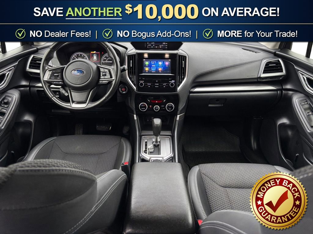 3.70 Axle Ratio, 4-Wheel Disc Brakes, 6 Speakers, ABS brakes, Air Conditioning, All-Weather Floor Liners, Alloy wheels, AM/FM radio: SiriusXM, Anti-whiplash front head restraints, Auto High-beam Headlights, Automatic temperature control, Blind Spot Detection (BSD), Blind Spot Detection w/RCTA & Power Rear Gate, Brake assist, Bumpers: body-color, CD player, Driver door bin, Driver vanity mirror, Driver's Seatback Divided Pocket, Dual front impact airbags, Dual front side impact airbags, Dual USB Charge Ports, Electronic Stability Control, Emergency communication system: STARLINK Safety and Security (Subscription Required), Exterior Parking Camera Rear, EyeSight System, Four wheel independent suspension, Front anti-roll bar, Front Bucket Seats, Front Center Armrest, Front fog lights, Front reading lights, Fully automatic headlights, Heated door mirrors, Heated Front Bucket Seats, Heated front seats, Illuminated entry, Knee airbag, Low tire pressure warning, Multi-Function High Grade Display, Occupant sensing airbag, Outside temperature display, Overhead airbag, Overhead console, Panic alarm, Passenger door bin, Passenger vanity mirror, Power door mirrors, Power driver seat, Power moonroof: Panoramic, Power Rear Gate, Power steering, Power windows, Premium Cloth Upholstery, Radio data system, Radio: Subaru Starlink 6.5 Multimedia Plus System, Rear anti-roll bar, Rear seat center armrest, Rear window defroster, Rear window wiper, Remote keyless entry, Roof rack: rails only, Security system, Speed control, Speed-sensing steering, Split folding rear seat, Spoiler, STARLINK/Apple CarPlay/Android Auto, Steering wheel mounted audio controls, Tachometer, Telescoping steering wheel, Tilt steering wheel, Traction control, Trip computer, Variably intermittent wipers, Wheels: 17 x 7.0J Black Machine Finish Alloy.