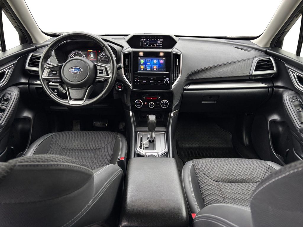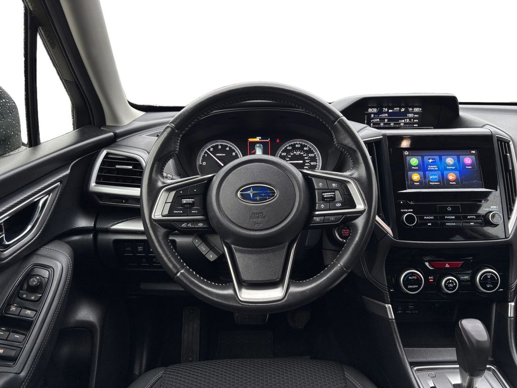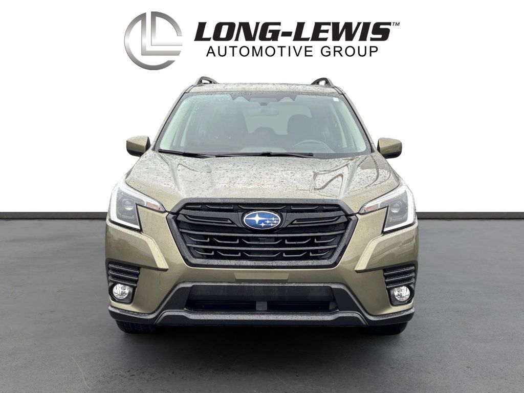 2022 Subaru Forester Premium Autumn Green Metallic Premium AWD Lineartronic CVT 2.5L 4-Cylinder DOHC 16V 3.70 Axle Ratio, 4-Wheel Disc Brakes, 6 Speakers, ABS brakes, Air Conditioning, All-Weather Floor Liners, Alloy wheels, AM/FM radio: SiriusXM, Anti-whiplash front head restraints, Auto High-beam Headlights, Automatic temperature control, Blind Spot Detection (BSD), Blind Spot Detection w/RCTA & Power Rear Gate, Brake assist, Bumpers: body-color, CD player, Driver door bin, Driver vanity mirror, Driver's Seatback Divided Pocket, Dual front impact airbags, Dual front side impact airbags, Dual USB Charge Ports, Electronic Stability Control, Emergency communication system: STARLINK Safety and Security (Subscription Required), Exterior Parking Camera Rear, EyeSight System, Four wheel independent suspension, Front anti-roll bar, Front Bucket Seats, Front Center Armrest, Front fog lights, Front reading lights, Fully automatic headlights, Heated door mirrors, Heated Front Bucket Seats, Heated front seats, Illuminated entry, Knee airbag, Low tire pressure warning, Multi-Function High Grade Display, Occupant sensing airbag, Outside temperature display, Overhead airbag, Overhead console, Panic alarm, Passenger door bin, Passenger vanity mirror, Power door mirrors, Power driver seat, Power moonroof: Panoramic, Power Rear Gate, Power steering, Power windows, Premium Cloth Upholstery, Radio data system, Radio: Subaru Starlink 6.5" Multimedia Plus System, Rear anti-roll bar, Rear seat center armrest, Rear window defroster, Rear window wiper, Remote keyless entry, Roof rack: rails only, Security system, Speed control, Speed-sensing steering, Split folding rear seat, Spoiler, STARLINK/Apple CarPlay/Android Auto, Steering wheel mounted audio controls, Tachometer, Telescoping steering wheel, Tilt steering wheel, Traction control, Trip computer, Variably intermittent wipers, Wheels: 17" x 7.0J Black Machine Finish Alloy.